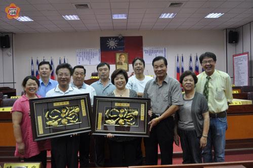 金城鎮民代表會第九屆代表陳媽愛等三人任期將屆滿,鎮代表會主席陳天成與代表昨日致贈「功在鄉梓」紀念牌,感謝他們擔任代表期間為民喉舌,對地方建設和民眾權益和應興應革提出建言,貢獻良多。 新當選第十屆鎮民代表會代表即將於八月一日舉行宣誓就職,第九屆代表陳媽愛、王龍含、劉靜暉等三人任期屆滿將卸任,昨日上午十一時許金城鎮代表會主席陳天成、副主席翁根龍代表致贈紀念牌給予代表陳媽愛、王龍含、劉靜暉等三人,感謝他們擔任代表期間為民喉舌,包括金城鎮長石兆瑉、主任秘書黃耿銘及鎮公所各課室課長在場祝福。 陳媽愛由衷的感謝公所、代表會與金城鄉親的支持與厚愛,卸任後將投入志工行列繼續來服務鄉親。與會的人士也表達祝福,期望他們繼續發揮這一份熱忱,為金城鄉親做更多的事,謀取更多的福利。