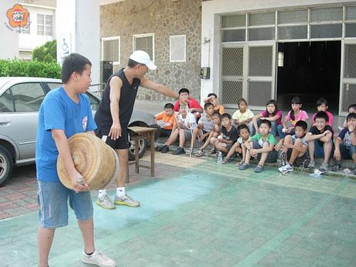 金寧中小學國小部利用暑期推出陀螺營隊活動,邀請桃園縣大溪鎮美華國小主任吳建五來金授藝,讓小朋友體驗打陀螺的樂趣,也延續傳承陀螺的民俗技藝文化。 寧中小辦理教育部99年度推動教育優先區計畫發展教育特色及99年金門縣打造運動島運動樂活島之發展地方特色運動,辦理陀螺營隊活動,也豐富小朋友的暑假生活。 校長許維民感謝吳建五老師犧牲暑假假期,來到離島教導小朋友體驗陀螺的民俗技藝,他鼓勵學子認真學習,來延續發揚該項民俗的技藝文化。 體格精壯的吳建五,不僅是學校的體育老師,還領有國際籃球裁判執照的籃球裁判,更是取得桃園縣文化局發給的雜技類花式陀螺街頭藝人證的陀螺達人。他已收藏了四十四國,五千三百多個各式各樣的陀螺,也是島內打一百五十台斤大陀螺紀錄保持人,靠著腰力與平衡感,讓偌大的陀螺轉了一分四十四秒,這紀錄曾有日本人來臺挑戰失利。 這次的活動,因為飛機托運的因素,這個大陀螺無法跟來金門露相,不過吳建五也帶來了三個較小的大陀螺,並教導同學們打法及實際體驗。吳建五也以影像、實物加上簡報,讓參與的同學能了解陀螺的文化。 吳建五的子弟兵也隨行到金門,為寧中小師生帶來了示範表演及教學活動,從不足一公克的超小陀螺到三十台斤的大陀螺表演、定點打陀螺、飛天陀螺、凌空虛渡,到環保陀螺秀,精湛的技藝,讓寧中小師生嘆為觀止。