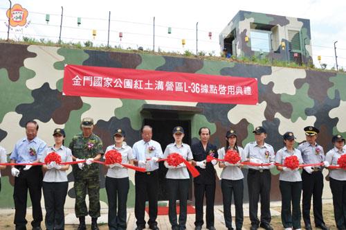 金門國家公園管理處接管整建的紅土溝L-36據點,昨日在金管處長曾偉宏、烈嶼鄉長洪成發等人剪綵下,開放參訪,為烈嶼新添一處軍事遊憩景點。洪成發肯定金管處開闢景點的努力,但也呼籲金門國家公園發展「只要點不要面」,縮小範圍,不要影響地方發展。 金管處自民國95年接管紅土溝L-36據點,開發作為軍事遊憩景點,昨日上午十時三十分舉行啟用典禮,由金管處長曾偉宏主持,包括烈嶼鄉長洪成發、議員林金量、烈嶼指揮部指揮官張景陽、鄉代會主席方水萬、以及烈嶼學區校長、地方民意代表、烈嶼駐軍官兵代表和金管處員工一起參與活動,慶祝烈嶼鄉又添一處觀光景點。 鄉長洪成發肯定金管處開闢景點的努力,不過他指出,小金門濱海大道都劃入國家公園範圍,鄉民希望檢討縮小「只要點不要面」,不要影響地方發展。 洪成發說,國家公園管轄的範圍區域,台灣和金門有不同的背景和環境,和民眾所產生的關係和影響性也不一樣,他舉例如台灣的陽明山、雪霸、太魯閣等國家公園區域,只要在該座山的區域範圍內進行建設,就可以很明顯讓遊客有所感受,對於區域外的民眾不會帶來太多的影響性,金門卻有不一樣的歷史背景和環境,國家公園所劃設的範圍區域,有很多是涉及到民眾的土地,國家公園的法令不僅限制民眾的申請建築,也阻礙了政府要投注開發的公共建設。 洪成發希望中央主管單位能真正重視問題,呼籲金門國家公園發展「只要點不要面」,縮小範圍,不要影響地方發展,才能獲得地方民眾的支持。 曾偉宏也回應鄉長洪成發的建議,他說,國家公園範圍正在通盤檢討縮小,預定年底會有結果,營建署會有效率地檢討,回應地方的意見。 建築上方的瞭望台,有模擬衛兵執哨的肖像,林金量認為衛兵以背槍執哨,似乎是不適當,應更換持槍備勤的姿勢,才是適宜的動作,建議該處能做處理。
