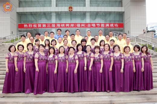 金門縣合唱團赴大陸福州市參加「第三屆兩岸合唱節」比賽,「藝」鳴驚人,榮獲銅茉莉獎的佳績,此行,金門縣合唱團還應邀參加「中國婦女創業創新成果博覽會」開幕式與「激情廣場激情夜,兩岸同歌手拉手」的大型聯誼晚會活動演出,為兩岸的藝術文化交流和行銷金酒發聲,寫下美好的一頁。 金門縣合唱團於六月十七日到二十一日在文化局課長周祥敏和課員陳建武的率隊下,包括總幹事陳賢德老師與四十七位團員一起參加「第三屆兩岸合唱節」比賽。 據了解,金門縣合唱團係台灣最早參與海峽兩岸合唱節的團隊,曾於前年2008年參加在福州 舉行的「放歌海西-海峽兩岸首屆合節」榮獲銅茉莉獎,此次再度應邀參加大陸的大型合唱比賽。 金門縣合唱團初賽演唱「輕笑」和「龍的傳人」;複賽則以「嘎哦麗泰」和「快樂的聚會」等歌曲與海峽兩岸之優秀合唱團隊軋歌,由於這次參與比賽的團隊都是海峽兩岸專業或半專業的最優秀團隊,因此金門縣合唱團也特別禮聘任教於湖北省武漢音樂學院的大陸名指揮潘宇凌,遠道從湖北趕來作密集的賽前指導並擔任比賽指揮,經過多次辛勤的練習綵排,才上場比賽。 為爭取最佳成績,團員們都非常認真的練習,雖然比賽結果成績和台灣的永和愛樂合唱團、靜宸合唱團等並列銅茉莉獎,但指揮和團員們都覺得很有進步和收穫。 此外,金門縣合唱團也在六月十九日上午,應邀參加假福州會展中心舉行的「中國婦女創業創新成果博覽會」開幕式;晚上並參加福州五城區激情廣場舉行的「激情廣場激情夜,兩岸同歌手拉手」的大型聯誼晚會活動,為兩岸的藝術文化交流和行銷金酒發聲,留下美好的紀錄。