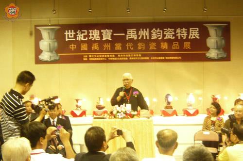 「禹州鈞瓷」與「浯洲陶瓷」,是否可能產生交流,對話?隨著「世紀瑰寶││禹州鈞瓷特展》在台北登場,策展人李沃源強調,這一檔展覽其實就是《和平金門││華人百位國畫家彩瓷聯展》的延續,他會積極牽線、促成享「世紀瑰寶」之譽的「禹州鈞瓷」到金門展出,與中華民國唯一的官窯││浯洲陶瓷進行對話,交流,以藝術打通、深化「和平金門」之路。 繼《和平金門》彩瓷聯展後,李沃源再接續策展歷來在台最大規模的《世紀瑰寶│禹州鈞瓷特展》,昨日揭展。 河南省禹州市鈞瓷行業協會與河南省商務促進中心,攜帶鈞瓷當代精品近百件,昨日起至六月二十九日,在國立中正紀念堂三樓四展廳舉行。活動由河南省禹州市政協董立民主席擔任團長,隨同參與鈞瓷專家、貴賓者有朱煥然、夏志勝、張華軍、周庚寅、秦春梅、王運璽、侯建安、劉靜、張金偉、劉東旭、劉果岭、張志杰、董文創、姚宏遠、萬曉磊、張新亮、白凡、范亞博、楊金志、趙學仁、劉建軍、李欣營、秦懷立、孔春生、李建峰、劉次會、晉曉瞳、高根長、張兆旭、崔松偉、丁建中、王建偉、李德漢、劉永召、楊國政、吳健、陳建庭、史宇聲等三十九位。昨天上午十時的開展茶會,貴客雲集,藝術大師李奇茂、前考試院長許水德、國民黨副秘書長張榮恭、中國小姐凌蕙蕙等百餘人赴會。 策展人李沃源昨主持《世紀瑰寶││禹州鈞瓷特展》開幕,並述說鈞瓷始於唐,盛於宋,是中國宋代五大名瓷之首,素有「黃金有價鈞無價」,縱有家財萬貫,不如鈞瓷一片」之說。 《世紀瑰寶││禹州鈞瓷特展》的近百件的參展作品,均為禹州市最著名的鈞瓷企業的大師作品,經過專家評審精心挑選;堪稱當今鈞瓷發展最高水平的精品、珍品。活動由中正紀念堂管理處,兩岸和平文化藝術聯盟、台北市山癡畫會、金馬台澎兩岸交流協會、中華博遠文化經濟協會、敬鈦傳播公司共同舉辦,李沃源策展,樓震宇統籌。 金馬台澎兩岸交流協會理事長李沃源繼《和平金門││華人百位國畫家彩瓷聯展》後,再次成功策展《百年瑰寶││禹州鈞瓷特展》,下一步,李沃源還要把禹州鈞瓷引進金門,與浯洲陶瓷舖展兩岸藝術交流。