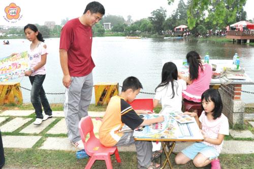 「五月五.慶端午」寫生比賽昨日上午在古寧頭雙鯉湖畔舉行,吸引了一千多位對繪畫有興趣的地區幼稚園至國中學生與家屬到場參加,以彩筆彩繪龍舟競賽的盛況與雙鯉的湖光水色之美,以另類休閒方式來慶祝端午佳節,現場洋溢著溫馨的親子情。 金門縣第二屆端午節龍舟賽於昨(十六)日假雙鯉湖隆重舉行,而由縣府主辦,古寧國小承辦的2010端午節「五月五.慶端午」寫生比賽,也於昨日上午八時三十分至十二時在古寧頭雙鯉湖畔舉行,計有本縣國中、國小及幼稚園學生五百多位,在老師帶領或家長陪同拿著畫板和顏料至現場報名,加上陪同親屬約有上千人到場參加,以另類戶外休閒的方式歡度一個特別的端午節。 參賽的學生以自備的繪圖工具在雙鯉湖邊擇地畫將起來,現場可見到老師、家長在旁指導畫圖,孩子發揮創意用畫筆和色彩,紀錄眼前所見的景致,不管湖中龍舟比賽的盛況或是湖邊花草樹木、甚至環繞湖邊的人潮等,都成為畫作的題材,每一幅作品各有特色,也展現孩子的創意,現場鼓聲、加油聲與孩子天真無邪的笑聲,洋溢在湖邊四周,處處譜出一幅幅親子歡樂的溫馨畫面。共為今年的端午節留下最難得的回憶。 承辦單位古寧國小教導主任李世昌指出,這項「五月五.慶端午」寫生比賽計分為國中組、國小高年級組、國小中年級組、國小低年級組、幼兒組五組,參賽者的畫件,將聘請地區美術學會老師進行評審,預定於下週五(二十五日)公布比賽成績。