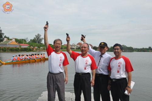 2010金門縣第二屆端午節龍舟賽,昨日在古寧頭雙鯉湖舉行,縣長李沃士、議長王再生兩位府會首長共同參與開幕儀式,李縣長期待該項端午龍舟賽,在各界的共襄盛舉,延續傳承這項傳統民俗紀念意義活動,逐步的擴大成為金門傳統民俗的重要活動之一。議長王再生也希望能結合觀光的行銷,吸引更多觀光客的參與,也為金門觀光產業注入泉源。 在天公的作美下,第二屆龍舟賽,昨日上午八時三十分在古寧頭雙鯉古地廟舉行龍舟競賽開光點睛儀式,由縣長李沃士率領議長王再生、議員林孫全、縣府局室主管、縣屬單位主官、金管處處長曾偉宏、金寧鄉長陳成勇、鄉代會主席李正騰、鄉代表李開陣、以及學校校長,虔誠的上香請神,祭拜雙鯉古地廟主神關聖帝君,祈佑地方安寧、圓滿活動。 李縣長、王議長也為兩艘龍舟開光點睛,讓活動順利又平安。 隨後進行開幕儀式,北門醒獅隊的祥獅獻瑞,為活動揭開序幕。鳳翔社區居民端出的「舞蛤精和跑旱船」民俗才藝表演,在今年的迎城隍慶典,獲得民眾的青睞,票選為最佳人氣陣頭榮耀。昨日再度亮相,立即吸引觀眾注目的眼光,社區媽媽們自編自演的舞蛤精、跑旱船節目,很生動又精彩,炒熱現場,洋溢著傳統節氣的氣氛。尤其是劉淑睿老師犧牲形象,演出的三八媒婆角色,和成員默契又逗趣的表現,博得觀眾的掌聲。 李縣長稱讚北門醒獅隊、鳳翔社區所帶來的精彩節目,增添活動的熱鬧。他也感謝所有參與活動的單位和工作人員,犧牲假日,投入活動的辛勞表現,讓第二屆端午龍舟賽順利登場,帶給鄉親歡樂。 李縣長說,這幾天,地區許多社區相繼辦理端午節慶祝活動,包粽子是最具代表性活動。相對的,端午節龍舟賽也邁入第二屆,今年的男子組有十隊參賽,女子組也有三隊,縣政府也組兩隊響應活動,他期望明年度有更多團隊一起共襄盛舉,包括,各鄉鎮和金管處等單位都能組隊加入,透由該項活動,相互的交流,也運動健身。 李縣長很肯定端節龍舟賽所代表的傳統民俗意義性,他期待該項活動不僅要傳承下去,還要逐步拓展,愈辦愈好,逐漸推動成為金門重要活動之一。 李縣長祝福各參賽隊伍划出好成績,他也向鄉親祝賀端節快樂。 議長王再生也肯定舉辦龍舟賽的意義性,他說,「龍躍中原、兩岸和平」,今年也有來金交流的大陸漳州技術學院學子組隊參與,期待未來有更多兩岸三地的朋友,組隊到金門觀光,也參與金門的民俗活動。 王再生說,昔日的戰地政務體制,讓龍舟賽延宕幾十年未辦,如今順利的辦理第二屆,未來還要擴及參與的層面,也能納入觀光團體,透由觀光的行銷,讓金門的龍舟賽走出去,吸引更多遊客來金體驗金門傳統民俗活動。 地主鄉長陳成勇很高興龍舟賽選擇在金寧轄區的古寧頭雙鯉湖舉辦,他也當場回應李縣長期待明年鄉鎮能組隊參與,會協調其它四鄉鎮共襄盛舉。 陳成勇表示,龍舟賽講求是團隊精神,也是勝負的關鍵,選手們透由活動展現勝不驕、敗不餒的運動精神。他也期待明年還有更多團體一起參賽,金寧的慈湖,也是很好的活動場所,重要的是,希望有更多的活動湧入金寧,鄉公所和鄉代會一定會全力的配合,能為金寧鄉帶來觀光人潮,帶動地方觀光產業發展。 龍舟賽在李縣長、王議長等來賓共同鳴槍下,各組展開競賽,上午的龍舟賽預賽,各組拚鬥十足,卯足全力來爭取晉入決賽的資格。在接近中午,預賽賽程告一段落,主辦單位也推出水中尋寶的趣味活動,丟入湖中一百個大小保特瓶,瓶內有置放兌放獎品的紙條,可以兌換獎品。除了預先報名的五十位民眾、青年,現場也再徵求意願尋寶者,大夥躍入湖中,有身著救生衣尋寶、也有身手矯健的泳將,很快找到寶物,還兩手高舉多個寶物,收穫滿滿。 下午續進行龍舟賽賽事,於下午三時許落幕。活動中也有寫生比賽、和園遊會活動,讓民眾盡情的參與,帶給民眾歡樂的端午假期。