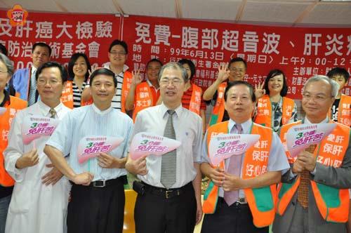 財團法人肝病防治學術基金會再度啟動「保肝聖戰!」,昨前進大金門、烈嶼鄉展開肝病抽血篩檢、病毒量超音波等系列精密儀器檢驗,上千名民眾受惠。金門縣長李沃士、基金會執行長許金川博士等帶頭宣示「三分鐘、免肝苦」,鼓勵全民做保肝運動,捍衛自己健康,拒絕「作肝苦人」。 繼今年4月蘭嶼肝病篩檢後,財團法人肝病防治學術基金會醫療團隊肝病巡迴列車,昨再度開抵大小金門,篩檢時間自上午九時至十二時;下午一時至四時分別在署立金門醫院、烈嶼分院展開二階段肝病篩檢,包括B、C肝抽血、以及病毒量的檢驗和超波音的檢查,期透過早期預防,讓居民「免肝苦」。 據97年金門縣十大癌病死因,肝癌位居第一名。李縣長感謝肝基會關心金門縣民健康。他指出,金門人早年曾有段艱辛歲月,不少鄉親死於肝癌,原因可能與當年食用戰備糧食米有關,加上衛生環境及醫療條件不佳,導致許多寶貴生命的消逝,多少家庭遭遇天人永隔悲劇,實令人傷感與不忍。 李縣長已責成衛生局將全民健診補助項目,正式納入明年預算執行,預計編入二千五百萬元讓「金好康健診」再加碼,主要健診項目以肝病、腫瘤等威脅居民生命防治與篩檢列為重點,預防重於治療,守護鄉親的健康。同時也期待透過學會、縣衛生局建立更好交流與研究,全面提升預防與治療。 署立金門醫院副院長李錫鑫表示,署醫願意以醫院的硬體優勢,以一個平台的概念,和各社會團體,特別是非營利的公益組織,一起形成連結,提供可以就近獲優質的醫療事業供給,期這樣合作機制,能營造有利環境,建立以病人為中心的醫療關懷,創造更良好醫療服務,並逐步實現李縣長施政的四大願景。 縣衛生局自民國92至98年推動社區40歲以上民眾整合式篩檢,篩檢1萬5千人中,發現B肝帶原者率百分12-13;C肝帶原率百分之1.6。元大文教基金會執行長林武田提醒大家愛肝、保肝,希望人人重視健康,擁有好心肝。 財團法人肝病防治學術基金會執行長許金川談及自己過往一段「留金歲月」,對金門深藏著一份豐厚情感,因此他期藉由篩檢把健康帶給金門人,他說,金門人以前都是吃戰備米,戰備米因發霉產生黃麴毒素,加上當年衛生條件不好,以及醫療資源缺乏,致外島地區軍民罹患肝癌偏高。 「肝病」是國人健康的最大殺手,許金川與肝病防治團隊發心將肝病從金門島踢出台灣海峽,他表示,正確的保肝方法,是必須做完整的肝臟檢查,肝功能指數異常、病毒量越高,皆會提高罹患肝硬化及肝癌的風險,他希望外島金門,不僅是三民主義模範縣,更是「保肝」模範縣。 李縣長、李錫鑫、林武田及許金川等人同時以手勢宣示「三分鐘、免肝苦」,鼓勵全民做好保肝、愛肝的防治措施,同時頒發感謝狀。檢驗報告在4週後將寄發給受檢民眾,對於檢驗結果發現異常的民眾,也會主動透過電話、簡訊或電子郵件敦促就醫治療,以確保健康。