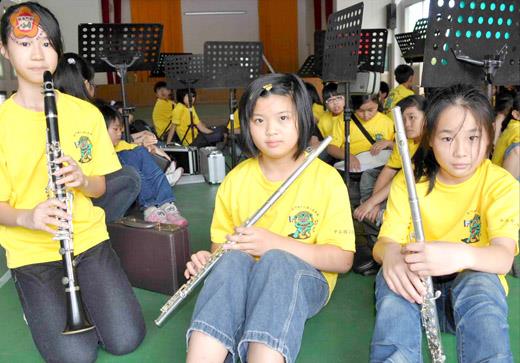 獨樂樂不如眾樂樂!學音樂的孩子,不會無聊! 中正國小管樂團昨天到柏村國小進行校外演出;中正國小不僅把動人的音樂分享給小校學校,還做到資源共享,吸收了小校的學生,讓學校沒有管樂團的學生,也能加入他們。 中正國小昨天在柏村國小演出的曲子有西班牙舞曲、俄羅斯舞曲等。據樂團的指導老師董昱珊表示,中正國小管樂成立已經六年,每年都會安排校外演出;不僅如此,管樂團近年也提供資源,招收外校的小學生;明年還計畫參加全國性的比賽。 柏村國小就有兩個學生是中正國小管樂團的成員,他們是洪紹軒和呂宜家。 昨天參加演出的學生有陳婉昀、文慧穎、林歆慈等五十多人。陳婉昀表示,學管樂可以學習表達感情;文慧穎說,學音樂就不會無聊!