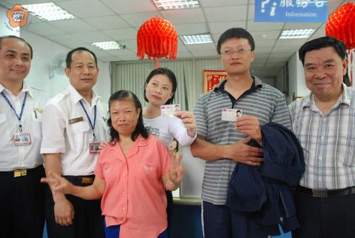 移民署居中協助促成,分隔兩岸26年母子(女)昨天在金門慶團圓。在台灣出生的陳建輝、陳雅芳兄妹自小被父親帶回大陸原籍落戶定居,此次終一償多年心願「回復」台灣地區人民的身分,並落籍在金門,兄妹兩人手持身分證神情激動地說:「真心太感動!」 26年前隨父親「回歸」大陸的陳建輝(38歲)、陳雅芳(33歲)兄妹,昨上午由母親楊春梅帶領,以及移民署金門服務站人員協助下,前往金寧鄉戶政事務所辦理設籍,順利回復台灣地區人民身分。楊春梅面對失散多年的子女說:「你們兄妹跟媽媽擁有一模一樣的身分證」。高興之情溢於言表。 這段兩岸骨肉分離到團圓的曲折故事,緣起原籍台南縣的楊春梅,於民國60年與大陸撤退來台擔任公職的陳增元結婚,育有1子2女,詎料,陳增元因思鄉心切,在73年8月間帶著3名小孩不告而別,經泰國曼谷轉機到廈門,回到福建建甌老家。 楊春梅回憶地指出,她的丈夫陳增元及子女不見後,自此音訊全無,也四處尋覓無著,2年後訴請法院判決離婚,並且改嫁及回金門金寧鄉定居。直到77年6月10日,她輾轉收到子女自大陸來信,才知道前夫原來是回到大陸老家,她透過書信與兒女互訴思念之情,並曾前往大陸相聚。直迄前夫過世後,才申請兒女返臺探親。 去年,楊春梅至移民署金門縣服務站申辦子女來臺探親案時,櫃檯同仁發覺楊女似有難言之隱,言語表達亦未流暢,經懇談開導,得知前揭案情,對此親情悲劇,即主動協助其子女申請回復臺灣地區人民身分,全案經完成兩岸相關文書處理,骨肉團圓,重享天倫之樂,誠屬美事一樁。