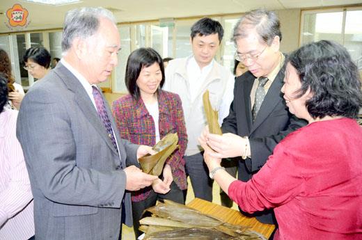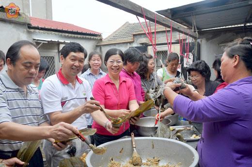 迎端午學習地方節慶風俗,縣府為新移民辦文化融合活動,百位鄉親參與,縣長李沃士、議長王再生也小露一手,體驗包粽樂。為期一天的活動,民眾共完成近千顆粽子,中途並跳土風舞活動筋骨,品嚐美味粽,快樂、健康歡度佳節。 縣府表示,端午節將屆,伴隨社會多元化變遷,國人和外籍婚配情形逐漸增加,金門也不例外,近年來異國婚配有增無減,外籍與大陸配偶逐年增加;而離鄉背井的新移民入境金門後,除了文化背景差異外,必需肩負生育、養育以及生活適應問題,故為促進新移民對地方文化風俗的認知,於端午節前夕規劃新移民文化融合活動,邀請全縣民眾共同參與,藉活動交流縮短彼此認知差異,期增進社會和諧。 慶祝端午節新移民「文化融合」活動,昨日假社會福利館舉行,縣長李沃士、議長王再生、議員歐陽儀雄、議員唐麗輝、議會機要秘書陳玉珍、縣府社會局局長方天吉和與會百位民眾一同參與,由林紅緞老師講解地區肉粽飲食文化,提供健康食材概念與食材保存,並教民眾如何包粽子。 縣長李沃士表示,感謝也感佩近年來在婦權會努力下,新移民和弱勢鄉親生活輔導已建立深厚根基。縣府社會局在端午節前辦理活動邀大家同樂,讓來自四面八方的新移民交流聯誼、互相談心,一解思鄉之情。 李沃士也說,透過活動自己首次學習包粽子,箇中學問深,鼓勵所有新移民努力將精髓學到手,更加融入地方生活。 李沃士也表示,來到金門的新移民,在低出生率的現在,為金門帶來了希望和活力;而不論來自何方,大家很幸福,因為在金門有縣府、議會、各社團持續不斷的給予協助支持,也期盼當大家有任何問題時能適時反應,地方樂意協助解決。 議長王再生也說,大家別自我貼標籤,來到金門就是金門人;鼓勵所有人在面對陌生環境和生活適應難題時,也許因為文化背景不同難免與公婆發生口角,希望大家能夠微笑以對,百善孝為先,多一分忍耐和溝通讓家庭更和諧、婚姻生活更美滿,營造良好的環境培育下一代。 議員唐麗輝也表示,婦權會在各式活動中,不斷闡揚其宗旨,鼓勵「婦唱夫隨」,期盼男士撥出時間陪同婦女參與活動,從中體驗其辛勞,平日展現紳士風度,動手分擔家務,彼此多一點付出、關懷,讓關係更親密、生活更幸福。 新移民辦文化融合活動,府會首長挽袖帶頭學做家事,和百位鄉親一同體驗包粽子。而在活動之前,來自各地的新移民,志願投入前置作業,學習付出與回饋,讓活動進行更順利,讓所有人歡歡喜喜提前過端節。
