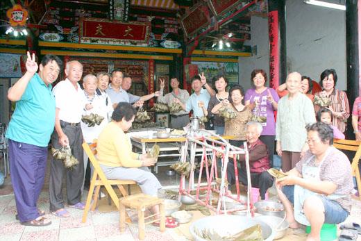 迎接一年一度的端午佳節到來!烈嶼鄉上庫社區發展協會昨天舉辦慶端午粽飄香包粽子聯誼活動,全社區大人小孩都來參加,並把剛煮好熱騰騰,粽香四溢的肉粽,分送給每一家戶,吃出濃濃的端午節味;上庫社區理事長吳國泰表示,希望透過節慶聯誼凝聚向心力,社區居民攜手一起打造美好的家園,創造幸福的生活品質和願景。 慶端午,上庫社區發展協會粽飄香包粽子聯誼活動昨天上午在吳氏祠堂舉辦,社區的婆婆媽媽們都來參加,小朋友也摻一腳,有的洗糯米,有的切材料,有的下鍋去炒,有的包粽子,有的煮粽子,洋溢著熱鬧的過節氣氛。 上庫社區理事長吳國泰和理監事也到場參與包粽子聯誼活動,昨天做的是肉粽,以竹葉包裹豬肉、雞蛋、香菇等材料,十分的豐富,熱騰騰的肉粽香四溢,分送給每一家戶品嚐,吃出濃濃的節味,也提前共度快樂的端午佳節。 據烈嶼鄉志歲時節慶篇記載,每年的農曆五月五日為端午節,又稱五月節。在這一天,各家戶均會在自家門懸掛蒲艾、榕蒜、桃枝及仙人掌等物,以及摺紅布畫八卦,掛於門端;並且以雄黃灑於住家房屋四周,以防蚊蟲。而且,也製作香包,掛於小兒胸前,或是在小孩子手腕綁五彩絲線,據說可以續命,長命多福。
