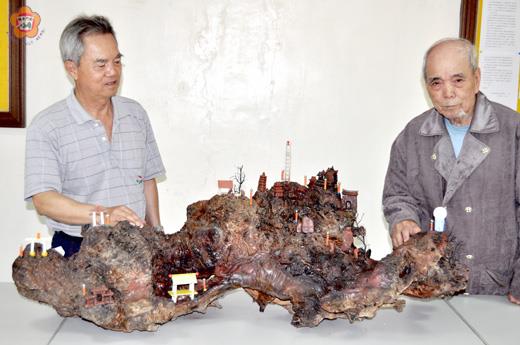 金城鎮古崗一位石木收藏家董朝來老師,特別喜歡收集未經雕刻刀修飾、渾然天成的朽木;他去年探訪古文物愛好者楊清國退休校長時,攜手合作將一塊木麻黃朽木樹頭,經盧根陣提供雕塑造型的舖成,加上董朝來老師伯樂之手,一件根雕作品「太武雄風」就此誕生,將於年底舉辦的文物展中亮相展出。目前擺放於金門縣退休教師協會會址(前莒光國小)供會員欣賞薰陶,也為會場環境增添了一份古色古香的藝文氣息。 收集石木超過四十年的的董朝來老師,從民國五十二年開始收集石頭、腐朽木頭,至今總共收集了一千多件作品,收藏規模可媲美博物館,家中的客廳,走廊,工作室藏著的都是奇石、圖案石、朽木,所收集石頭、腐朽木頭,在董老師的點化、創作之下,竟然可以「變」成大地自然景物、而有的像極了飛群走獸,實在令人嘖嘖稱奇。對朽木收集有興趣的董朝來老師指出,每一棵腐朽的木頭,在他眼中都變成了一件件價值不凡的藝術品。去年探訪退休校長楊清國時,發現他家門前收集一棵木麻黃朽木,在不同的角度上,可以看到不同的美感,後與楊清國校長攜手合作共同創作,董朝來老師將這塊朽木置於海水中泡浸數十天,並經過幾次上漆雕塑,加上盧根陣提供太武山景點雕塑造型的舖成,完成這件根雕藝術作品「太武雄風」,將於年底舉辦的文物展中亮相展出。如果有機會造訪,值得細細品味。 董朝來表示,朽木不同於雕刻作品,朽木藝術是完全一刀未動,渾然天成,由大自然所打造,這些朽木有的原先長在峭壁上,所以樹身印出了石頭印子,有的在枝幹裡夾住了碎石,就這樣長年與樹木一同生長,從這些奇形怪狀的木頭中,就可以判斷出這些枝幹原先的生長環境。而每件作品在不同的玩家眼中,因為欣賞的角度不同,觀賞的結果也不一樣,像是有些看似大自然景觀,而有的像極了動物,再經過幾棵植物舖成,一件藝術品就此誕生。 董朝來指出,朽木是我們生活空間裡處處可見的材料,過去很多人拿它當作柴火,白蟻、蛀蟲則是拿它當作食物,多數人不在乎它的存在,卻是素材藝術家眼中的寶貝。他讓許多珍貴的木頭成為收藏家的最愛,更是賦予朽木最多重生的推手。這些朽木若是任意棄置在河床上,它不具有任何的價值,但是經過伯樂之手,即使是腐朽的爛木頭,它也能夠成為一件瑰寶,從朽木中可以看到時間在樹身上留下的痕跡,具有一種令人動容的美感,若擺放在住家中,也為居家環境增添了一份古色古香的藝文氣息。但是他認為,上山下海尋覓渾然天成的有緣石四十餘年,豐富了我生活休閒的樂趣,也讓他更為接近大自然,而能進一步體驗大自然神奇之美,最難能可貴的是,有幸認識各方的同好、朋友,也激發了許多創作、設計上的靈感。