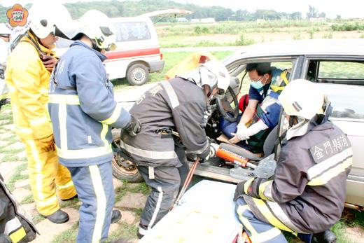 為加強職義消救災時緊急應變能力,提升災害搶救技能,維護民眾生命財產安全。烈嶼消防分隊昨天舉辦車禍受困搶救演練,模擬情境為閃避牛隻,車輛失控翻滾,駕駛受困車內;經緊急搶救把傷患送醫,整個過程相當逼真,獲得縣消防局督導人員給予高度肯定,同時並期勉應不斷精進訓練模式,提升救災成效。 烈嶼消防分隊舉辦的車禍受困搶救演練,於昨日上午九時登場,首先在消防分隊二樓進行兵棋推演,由該分隊長董紀瑋報告此次演練之目的、情境模擬、出動派遣情形、任務編組情形、搶救過程概述……,參加人員有縣消防局課員董必文、烈嶼消防分隊小隊長李昱翔、義消分隊長陳建雄、副大隊長林萬塔及幹事林建來等職義消十餘人。 這項車禍受困搶救演練活動假林湖村東崗直升機場舉辦,其情境模擬民眾行駛於羅厝開往后井方向,經過東崗直升機場附近路段時,因閃避牛隻,車輛失控翻滾,撞擊後導致油箱漏油,駕駛受困車內待救;經目擊者發現後,通報119報案,請求派員到場搶救……。 烈嶼分隊獲報後,立即出動消防車、救助車及救護車,以及人員十二名;在趕抵達現場後,經指揮官研判:「事故現場車體嚴重變形,民眾受困於駕駛座內,且因油箱破裂,隨時有起火之可能性」,立即展開搶救佈署作為,隨即進行搶救作為。 昨天整個車禍受困搶救演練為強化職義消各式破壞器材應用之技能,依執行計畫規劃這次組訓事宜,以期於類似災害發生之際,能立即執行救援所需之部署搶救作為,俾利維護地區民眾生命財產之安全,其演練過程詳實逼真,猶如真實救災現場一般。