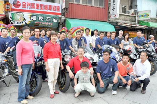 金門縣重型機車協會昨成立,台金以及廈門的車友齊聚金沙鎮沙美參與盛會,現場二十多輛重型機車排排站,十分壯觀,吸引民眾駐足。首任主委翁國寶說,協會成立完成老中青車友的夢想,未來將不定期辦活動結伴出遊,當作正當休閒娛樂,而且秉持騎車上路不喝酒、不飆車等原則。 籌備多時的金門縣重型機車協會,昨日上午十時三十分起,假金沙鎮汶沙里三民路十號(協會會址),辦理成立大會,吸引兩岸三地二十多位會員騎車到場,為歷史性一刻作見證。沙美萬安堂主委黃瑞華、前主委張雲盛、汶沙里里長張瀚龍、以及民眾前往逗陣熱鬧,黃文成也代表立委陳福海參加活動獻上祝福。 黃瑞華代表沙美萬安堂管理委員會致贈新台幣一萬元給協會作會務使用。 前主委張雲盛表示,個人欽佩翁主委的玩車、愛車的精神,特別是此次透過協會,吸引愛車人從事正當休閒娛樂,希望大家要嚴格自律,騎車不喝酒,才能維護團隊聲譽,也帶動地區年輕朋友參與活動。 首任主委翁國寶表示,重型機車合法化後,地區車友漸增,經過一年多的努力終於成立協會,讓愛車人有個歸屬,也完成老中青車友的夢想,目前會員共三十六人,有台金以及在廈門經營的車友,未來將當作正當休閒娛樂,不定期辦活動結伴出遊,提供交流平台,並且秉持騎車上路不喝酒、不飆車等安全原則。 昨日成立大會現場,車友聚會交流,現場二十輛車友的愛車排排站,十分顯目,吸引民眾駐足賞車。多半為日系車款,其中,造價最高的是范海權的二千三百CC英式進口重型機車,而他也是現場年紀最長的車友;最少年的是七十七年次的大四生陳羽宣,會員包含各階層,騎重型機車沒有年齡之分,不過,他們的共同點都已考取重型機車駕照。