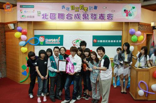 家扶基金會『青年自立釣竿計畫』北區聯合成果發表會於日昨假劍潭青年活動中心舉辦,包括新竹以北及離島金門、澎湖等十個家扶中心,共計一百零六位大專生齊聚一堂,分享自己一年來在釣竿計畫的收穫與成長及立下的目標與實現夢想的過程,有人許下:希望帶媽媽環遊世界、存下基金創業、專業證照…、也有未來目標是台灣~總統,在活潑表演及影片回顧,串起無限歡笑與築夢,期盼能激盪出釣竿成員更多的創造力以及改變。 金門家扶中心主任林玉真表示,此次金門家扶共有八名分別就讀台灣及金門大專院校生,日昨在社工員夏何君君的陪同下,赴台參加釣竿計畫成果發表,競賽表現良好並獲得佳作,此外,大專生們利用寒假返鄉服務時所拍攝的「全台最優家扶DVD導覽影片」競賽表現更是優異,獲得績優成績,林玉真表示,金門家扶第一次參與成果發表會,就有如此亮麗的成績,也算是替金門爭光! 據參加的洪瑋駿同學說,加入釣竿計畫後,他每月存四千元、積少成多,今年六月將存滿四萬八千元,中國信託慈善基金會同額補助,累積了九萬六千元,未來可做為考取證照及研究所費用,錢雖不多,卻成為他的圓夢基金,也算是他人生的第一桶金。 林玉真表示,現在孩子們的手上都有一支強而有力的「釣竿」,家扶和社會大眾的關懷,也努力齊心的為這群孩子打造更好的就業體制,鼓勵大專生為拓展人生視野立定一個目標、努力追逐夢想,更勉勵大家要做好準備,努力與堅持,終究可以走出自己的一條人生道路。 金門家扶執行「青年自立釣竿計劃」邁入第二年,主要在鼓勵加強大專生定期儲蓄習慣,協助其於過程中培養金錢使用的規則與概念,並提供相關課程訓練,包含理財、生涯規劃及就業力培訓、體驗教育訓練等。此外,大專生並利用寒暑假返鄉時間提供社會服務行動,包括課輔、財金體驗營、書香列車行動話劇與伴讀、交旅局工讀機會及拍攝家扶導覽影片等,每人均提供超過一百小時服務時數,共服務約四百人次,以回饋服務中心的扶助家庭,期望藉此給予大專青年一個向上提升的能量,發揮志願服務的精神。 包括中國信託慈善基金會主任陳玉澤、台北南區家扶中心主委蔣乃辛、總會社工處處長蕭琮琦、專員陳佳惠及六個中心的主任當日也出席「北區聯合成果發表會」,給予大專生加油及勉勵。蔣乃辛感謝中國信託慈善基金會自94年起共資助家扶大專生超過一億元,不但讓家扶大專生們學會理財,也協助弱勢學子脫貧;蕭處長則表示,青年是國家最重要的資產,雖然生活困頓仍不畏艱難勇往直前,追逐夢想而起飛,使生命發光發熱,也期盼青年未來能夠回饋社會。