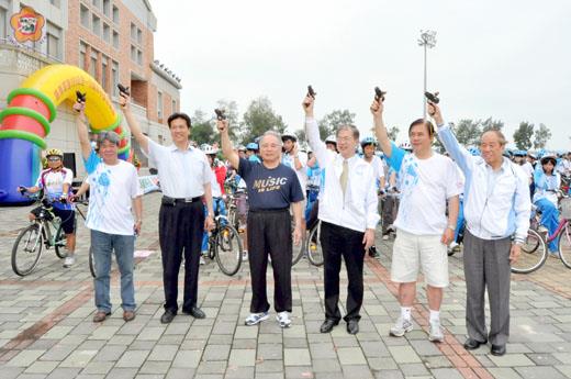 金門縣「鐵馬環島100公里│16歲成年禮挑戰騎」活動昨日盛大舉行,三百多名青少年報名參加挑戰自我,共同以騎鐵馬進行百公里的環島行,用最特別的方式,向外界宣告自己「轉大人」。 這場最特別的成年禮,於昨日上午八時許假縣立體育場展開,由縣長李沃士主持,包括縣議會議長王再生、縣府主任秘書盧志輝、社會局長方天吉、教育局長李再杭與各國中校長也都出席參加。 金門縣長李沃士、縣議長王再生等人一起主持鳴槍,並為參加的青少年加油。李沃士在致詞時表示,這是一項有意義的活動,也是人生的一個重要階段,他期勉青少年朋友,透過挑戰自我的考驗,來結束童年時期,也象徵人生邁入另一階段。 李沃士說,學子在此刻應該要感恩父母過去的栽培與照顧,也要掌握人生的方向,學習付出和服務,經過鐵馬環島「轉大人」之後,認同自己的鄉土,培養團結合作精神,開創亮麗的人生。 王再生表示,在昔日十六歲就要祭祖跟祖先報告自己已經轉大人,可以「娶某」,而今日,青少年則藉由鐵馬環島行的方式,挑戰自我,迎向未來,相當具有意義,他也提到,鐵馬環島100公里,要金城至沙美往返四趟,相當辛苦,能完成者,也展現出年輕人的積極與活力。 主辦單位表示,此次參加鐵馬環島的車隊,分成十六小隊,從縣立運動場出發,展開環島繞行,金門縣風火輪車隊支援領隊,帶領青少年繞行大金門四鄉鎮,沿線不乏傳統聚落、歷史古蹟、風景名勝等美景,讓參加的少年們重新認識故鄉之美,都留下深刻的印象。 雖然在活動過程中出現不少零星狀況,有車子「落鍊」、破胎、甚至不小心跌倒的,但是同學們反應良好,都覺得很好玩、有意義。 此外,小三通到金門交流的大陸福建石獅市自由車健身協會車隊十四人,適逢盛會,加入環島鐵馬行,欣賞金門風光,並對於金門縣府舉辦鐵騎成年禮活動,覺得金門青少年生活多采多姿。 主辦單位並於下午四時頒發完成證書,頒發金門縣長李沃士署名的完成證書,象徵完成100公里自行車騎乘的16歲青年認同自己的家鄉,並獲得來自家鄉的肯定。 昨日的成年禮挑戰騎的路線為:體育場後廣場(起點)→夏墅→延平郡王祠→賢聚→水頭→金門城→古崗湖→珠山→官裡→環島南路→昔果山→機場→環島南路→柳林路→太湖(休息30分鐘)→料羅→溪邊→內洋→田浦水庫→碧山→民俗村→官澳→何浦國小(午餐60分鐘)→瓊林→安岐→古寧→慈湖→華僑之家右轉→省府→海濱公園→北堤路→議會→東洲→金酒→頂堡→榜林→環島北路→民權路→體育場後廣場(終點)。