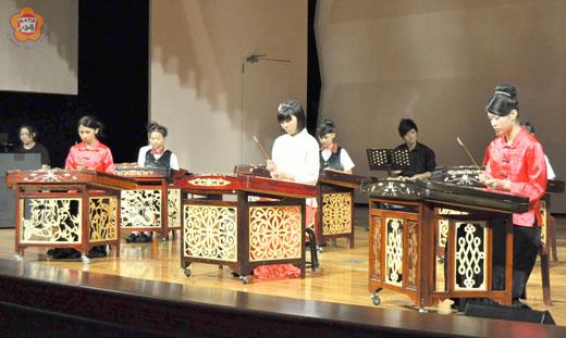 金門國樂揚琴打擊組專場音樂會,昨日下午在社會福利館登場,從大學生到小三生的表演者,大手和小手在舞台上「敲·打」,展現國樂團打擊樂器之美,譜出一首首呈現音色及節奏律動的曲目,讓金門軍民在假日午後接受國樂樂音薰陶。 金門國樂團除了在金門文化藝術節活動中,獲文化局邀請在莒光湖辦理一場戶外演出,昨日下午特別在社會福利館,就國樂團打擊組辦理一場專場音樂會,團員來自中正國小、金湖國小,金城國中、金湖國中、金門高中、國立台灣藝術大學的金門國樂團揚打組學員,他(她)們從小三到大學都有,攜手展現國樂打擊之美。 表演之前,金門國樂團說明,擔任金門國樂團揚琴打擊組分組老師洪寬倫,六年前在樂團藝術總監黃光佑的引介下到金門任教,他用心指導學生,練就每位孩子不同專長,去年更在全國音樂比賽揚琴獨奏項目中大放異彩,獲得各組全國前三名的佳績。 金門國樂團也指出,此次是文化局的邀請,在洪寬倫老師入伍前,由他抵金指導的第一代學生顏挺等,所有熱愛揚琴與打擊的孩子們全員到齊,透過揚琴與打擊專場音樂會,向金門鄉親分享國樂美技,也展現洪老師的教學成果。 這場名為「敲·打」的金門國樂團揚琴打擊組專場音樂會」,昨日下午二時三十分起在社會福利館演藝廳登場,現場吸引許多國樂團團員、家長以及慕名而來的鄉親和國軍弟兄,擠滿會場,吸引這場國樂打擊樂器和其他如廢棄的汽油桶、小鼓、三角鐵等樂器所激發出的優美樂音。 縣府教育局局長(同時也是金門國樂團榮譽團長)李再杭表示,感謝金門國樂團近幾年的努力,為地區學子自童稚時期灌溉國樂養分,傳承國樂藝技。也代表縣府感謝金門國樂團和所有學子的努力,多次在全國音樂比賽拿下優異成績,讓金門在音樂上揚名。 顏挺穿梭在每首曲目中擔任打擊伴奏,也現場表演《鼓上飛舞》排鼓獨奏,博得滿堂采。昨日國樂孩子們共譜出喜訊、快樂的紡織工、林沖夜奔、大象、黃河隨想曲、雲雀、花傘與蘭花等十九個曲目。