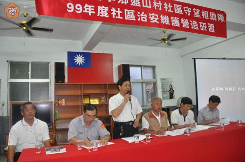 盤山社區守望相助隊昨晚召開「九十九年度社區治安維護營造研習」活動,金寧鄉長陳成勇稱許該隊不僅是金寧鄉率先成軍,協助警方投入社區治安的維護工作,組織健全、正常運作,殊值其它社區學習的「模範」。 該項研習活動,由隊長楊正東主持,盤山社區發展協會理事長翁自然、村長翁水河也和隊員、居民一起關心社區的治安工作。鄉長陳成勇、縣警察局金城分局副分局長陳必勇、金寧分駐所所長許耀華也到場感謝巡守隊團隊的付出和服務。 陳成勇表示,警力有限、民力無窮,居民為了社區更安寧,主動成軍巡守隊,協助警方加強社區的夜間巡邏,提供居民安全又安定的生活環境。他說,隊員們犧牲和家人相處的時間,負責盡職的執行勤務,尤其是很多白天上班的隊員,晚上還要義務「加班」,更是辛苦,但也因為有他們的付出,社區的治安有具體的成效,讓居民過安定的生活。 陳成勇說,詐騙集團的詐騙手法是層出不窮,老人家很容易受騙,他希望巡守隊要多向老人宣導,減少受騙案的發生。 陳成勇說,金寧鄉目前有三隊的社區巡守隊,他鼓勵更多社區也能效法,一起為社區治安維護盡一份心力,有安全的社區環境,對於居民和家人都是好保障。