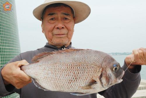 圖文/翁碧蓮 今年年歲逾七旬葉姓釣客,擁有半世紀釣魚技術與經驗,昨天在水頭港區西防波堤燈塔附近釣到一尾大魚「嘉臘魚」,魚長約60公分、重約8斤,市價近2千元;他開心地笑著說:「將烹煮為美味佳餚,與兒孫一起享用」,引來旁人欣羡的目光。