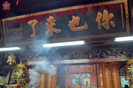 圖文/蔡家蓁 勸人為善!高掛在台灣省城隍廟裡的匾額中有一副「你也來了」,讓人看了一頭霧水,看似搞怪,其實卻是相當特別。據廟方表示,其實這句話的完整版為:你來了,悔已遲!,在城隍傳說中,人將離開人世時,城隍爺會清算人一生的善惡,故有:「你來了,悔已遲!」的告誡意味,用意在告誡世人在世需為善。