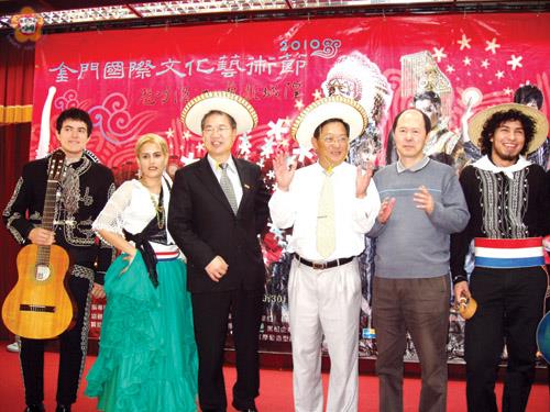 配合金門後浦城隍遷治330周年的迎城隍慶典,「2010金門國際文化藝術節」將提前於明天起登場。金門縣長李沃士昨天特別趕往台北市,於交通部觀光局旅遊服務中心舉辦記者會,宣布首次結合國際文化藝術及迎城隍傳統民俗的慶典正式開鑼。李縣長竭誠歡迎世界各地遊客到金門「作客」。 以「魅力浯江、藝獻城隍」為主題的2010金門國際文化藝術節記者會上,李沃士縣長應巴拉圭舞孃邀請,上台共舞一曲熱情洋溢的拉丁美洲傳統舞蹈,贏得台下熱烈掌聲。 李縣長致詞指出,5月的金門民俗慶典,將以25日登場的後浦「迎城隍」為核心,結合一系列異國藝術與本國表演團體,目標將吸引五千名台灣觀光客到金門,感受不一樣的浯島風華。 李縣長說,金門後浦城隍廟延續了330年的傳統閩南廟會民俗,有台灣廟會看不到的「扛輦」與如接龍般的「妝人蜈蚣座」等獨有的迎神活動,每年農曆四月十二的迎城隍,後浦(金城鎮)人山人海、香煙裊繞,熱鬧非凡。 今年更力邀台灣、大陸的城隍廟參與,屆時將有台灣省城隍、台北市霞海城隍、廈門城隍等兩岸三地的城隍會聚金門,一同出巡遶境,將是兩岸三地城隍大會合的宗教盛事與創舉。 縣文化局長李錫隆指出,「2010金門國際文化藝術節」為期3周,從14日至30日在金城鎮莒光湖畔舉行,將有來自玻利維亞、墨西哥、巴拉圭等8個國家的表演藝術團隊,及馬來西亞僑鄉歌手—情歌王子品冠、超偶—艾成、星光四少周定緯等偶像歌手,以及霹靂布袋戲、知名傳統歌仔戲團明華園(黃字團)等台灣表演團體輪番登場。 今年國際文化藝術節主題定為「魅力浯江、藝獻城隍」,即在配合後浦迎城隍的民俗慶典,希望凝聚國際與兩岸三地焦點,讓金門除戰地風情外,特有的民俗廟會也發光發熱。 昨天記者會結束前,記者圍著李沃士縣長詢問:金門城隍出巡與台灣的城隍廟會有何不同?兩岸城隍如何會聚金門?金門人迎城隍廟會有何獨特的陣頭來吸引台灣遊客? 李縣長表示,迎城隍已成金門年度最盛大廟會,這項傳承三百多年的迎城隍慶典,保留傳統的閩南廟會風俗,將列為金門縣與福建省商討中的共同申請世界文化遺產的重要部分;尤其這次台灣的省城隍、霞海城隍,將與廈門的城隍會聚金門,與金門後浦城隍爺一同出巡遶境,更是兩岸三地創舉,他竭誠歡迎台灣遊客,規劃金門遊,共同參與金城鎮萬人空巷,爭相虔誠「迎城隍」的盛況。