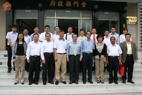 大陸福建省三明市市團參加福建省經貿文化交流團赴台訪問,昨日由三明市市委常委李家榮率團抵金展開經貿、參訪活動,並拜會金門縣商業會交流座談,雙方均表示多加強溝通往來,攜手合作共同發展,推動兩地全方位交流合作。 由大陸福建省三明市市委常委李家榮團長率領經貿參訪團,成員包括副團長永安市委書記江興祿、三明市副市長陳有極,及寧化縣委書記陳忠傑、龍溪縣委書記吳建國、建寧縣委書記盛福江及明溪縣、泰寧縣、大田縣的縣長,三元區長與市委副秘書長、台辦主任、經貿、旅遊、文化局局長等黨政幹部二十四人,於昨日上午十一時拜會金門縣商業會,受到縣商會理事長蔡天送及常務監事陳松泉與理監事熱烈歡迎,雙方並假縣商會二樓會議室舉行座談會意見交流。 理事長蔡天送說,福建省與金門有特別淵源,兩邊不僅地緣近、血緣親、文緣深,近幾年來因為兩岸三通帶動兩岸交通的方便,加上大陸近年積極推動海西的開發,現在我們看到福建省已成為台商積極投資的好地方。未來期盼多加強溝通促進兩岸經貿發展。
