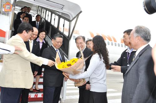 大陸福建省省長黃小晶率領經貿文化交流團結束訪台6天行程,昨經金門小三通返回廈門,成為第一位踏上金門縣的大陸福建省長。金門縣長李沃士、縣議會議長王再生設宴接風,同時分別贈送乙罈10公升金門高粱酒,黃小晶也以德化名瓷相贈,「金酒·名瓷」相得益彰,象徵兩岸情誼如酒般醇厚,將攜手努力邁向雙贏。 黃小晶一行昨日中午由高雄搭機抵金門,受到金門縣長李沃士率縣府團隊、縣議會議長王再生率議會團隊及金門各界代表等親往接機及獻花,現場「歡迎福建省長黃小晶蒞臨金門」熱情的歡呼聲,響徹雲霄,充分展現金門人天生好客與濃濃的人情味。令黃小晶等人有「回家的感覺」。 李縣長昨在金門各界歡宴福建省經貿文化交流團宴會中,代表金門鄉親對黃省長到訪表達熱忱歡迎之意,他說:「實是件深感榮耀的事!」,李縣長同時指出,金門受惠小三通政策施行,現逐步進入大三通領域,他由衷期待金門在兩岸大力支援之下,能呈現更快速的發展。 李縣長表示,金門過去由於受限體制的關係,許多建設與廈門相較呈現明顯的落後;對黃省長甫下飛機即一語道破金門機場建設不足「快語」;有如說到李縣長心坎裡的話,李縣長矢志全力以赴加速金門各項建設,不論是交通,抑是旅遊硬體設施,同時爭取福建省共同合作,將金門導入合作伙伴,為金門帶至更大發展與進步。 縣議會議長王再生致詞指出,金門港埠建設與興建金門大橋的重要性,已刻不容緩;同時分享他率議會團隊赴大陸考察參訪的心得與成果,對廈門建橋技術精湛,已邁向國際級的水準,他感到既欽羡又驚讚,也獲廈門方面同意將無條件提供金門建橋的技術與人力支援。 有關平潭島直接對台灣大三通「免稅實驗區」,其跨海大橋即將於10月通車;王再生說,廈門海西重大建設的快速發展,金門卻因時空背景而受限,對黃省長建議機場擴建改善問題,他希望借重廈門經驗協助金門建設。金門機場明年將由丙級升為乙級機場,包括人力建設配置,將比照高雄機場。 黃小晶對此趟台灣、金門行,他說,他由台北南下至台南、高雄,再到金門,沿途受到鄉親的親情、友情、鄉情相伴,令他十分「感動」,此行特別走訪金門,主要金門鄉親有百分之百是福建人(台灣則百分之八十),在鄉情呼喚之下親近金門土地、看看鄉親。 黃小晶說,金門鄉親濃濃鄉情及友誼,關係到兩岸和平的發展,雙方應致力兩岸和平發展,共同努力打造美好未來,小三通伊始全年客流量不過2萬多人次,迄去年120萬人次,今年預估超過150萬人次;黃小晶建議,金門與福建鄉親將金門機場擴大一點、增加飛機,金門將有更大成就與發展。 黃小晶昨率150人經貿文化交流團,其中有3位副省長、9位市長一同前來,包括文化、旅遊、經貿、金融、科技等交流團。昨天下午抵金酒公司、水頭聚落等參訪後,並於下午5時經小三通返回廈門,對金門閩南文化及鄉間山水景色印象深刻。因此返回福建後將推動「鄉村旅遊」。國民黨副主席林豐正特別趕到金門送行。