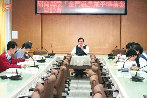 為落實縣長李沃士照顧農民競選政見,金門縣政府昨日召開研商籌設「金門縣農業平準基金」座談會。在縣府於九十七年已有訂定發布金門縣農業發展基金收支保管及運用辦法,出席座談會的縣府主計、財處及農政單位代表,均傾向就農民農業生產因天然災害受損,是希望由原來的農發基金和籌設的農業平準基金精神加以合併,朝擴大農發基金方向努力,並將漁牧涵蓋納入。 座談會昨日下午二時三十分起,在縣政府第二會議室召開,由縣府主任秘書盧志輝主持,建設局專員楊文璽、課長李廣榮、主計室課長郭玉琦、財政局課長陳國庭、農試所所長楊慧明、縣農會總幹事黃永堆等,出席參加。 經與會廣泛討論後,縣府主任秘書盧志輝是作成初步結論,強調為落實縣長政見,將把金門縣農業發展基金收支保管及運用辦法擴大,並將金門縣農業平準基金構想的精神容納進來,同時加上漁牧也涵蓋規範。 盧志輝並強調,將農林漁牧因天然災害納入補償辦法,在中央有補助的就爭取中央補助,因損害程度未達中央補助標準,地方補助額度則不能超過中央;並請建設局統整與會意見,再加以重新彙整,擇期再召開一次會議討論。 金門縣政府於九十七年四月十四日訂定發布金門縣農業發展基金收支保管及運用辦法,目的係為加速農業發展,增進農民福利。而籌設金門縣農業平準基金設置辦法,係依農業發展條例之精神,為減輕農民農業生產因天然災害受損,協助農民迅速恢復生產,加速農業發展。而所稱天然災害,係指颱風、豪雨、冰雹、寒流或地震所造成之災害,必要時得商請中央主管機關協助專案認定之。