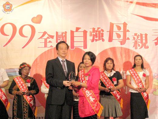 金門家扶中心今年度選拔洪亞本女士為地區的自強母親,並於日昨赴台接受全國自強母親的頒獎表揚,洪亞本為印尼華僑,勇敢擺脫丈夫的暴力陰影,不畏婚姻的衝擊,堅強地帶著兩個女兒在異地寒風中開出屬於自己的幸福花朵,實為自強母親精神之展現,相當值得社會大眾予以肯定鼓勵。 家扶基金會每年皆從全國各縣市家扶中心兩萬多戶家庭中,選拔出二十三名不畏艱苦困境含辛茹苦照料家庭、教養孩子的偉大媽媽,透過表揚大會,對她們的付出給予肯定。金門縣今年度的自強媽媽是洪亞本,她並於日前在金門家扶中心社工陳郁菁的陪同下,帶著小女兒一同赴台接受表揚。 一年一度的「全國自強母親表揚活動」日昨在台中市「金典酒店」擴大舉辦,由家扶基金會董事長林柏榕主持,兒童局局長張秀鴛、家扶基金會常務董事趙犁民、家扶基金會執行長王明仁等都應邀擔任頒獎人。 金門家扶中心主任林玉真表示,洪亞本是位相當勇敢的媽媽,洪亞本年少時就隨著父親回到金門生活定居,之後與丈夫相識而結婚,育有兩名女兒。然而婚後不堪丈夫長期的家庭暴力,帶著兩個寶貝女兒投靠娘家,在分居一年多後,訴請離婚並爭取兩女的監護權,之後就靠著自己的力量帶著兩個女兒走出婚變帶來的悲痛,展現她的堅毅與韌性。 洪亞本說著一口流利的閩南話,絲毫感覺不出她印尼的外籍身分。僅有印尼小學學歷,不識中文的洪女秉著只要有心就不怕沒工作的心態,找到林務所道路美化清潔工的工作,工作至今近六年。洪女每天的工作是除草、撿垃圾與搬運及種植道路花苗,縱使時常全身弄得滿是泥濘與雜草,洪女也不以為意,因為這一切對她而言都是甜蜜的負荷。 洪女常說,雖然是做清潔工作,但我不偷不搶,是靠著自己的力量養大這兩個孩子。而且這份工作很有意義喔,因為把道路換上美麗的衣裳,相信其他人看到也會感覺心情愉快吧! 林玉真表示,洪女雖不甚識字,但前幾年在同事引介下接觸一貫道,除了讓自己的心靈獲得支持的力量,洪女也帶著孩子們一起加入兒童讀經班,希望讓孩子在佛堂引人向善的氛圍中給孩子奠定良好品格教育。 熱心的洪女,還是家扶中心兒童舞動班的義工媽媽呢,自從兩個女兒98年初加入家扶中心兒童舞動班後,洪女不僅排班當導護媽媽,更發揮她精巧的手藝為孩子們縫製可愛的舞衣。在幾次的表演中洪女不但協助小朋友們上台化粧,更在上台前給大家加油打氣,穩定緊張情緒。洪女表示,感謝家扶的協助,很高興自己有這個機會可以幫上忙。 洪亞本說,婚姻的不如意對自己而言是生命的考驗與轉捩點,能將孩子們順利教養成長是她目前生活最大重心。她不求孩子未來有很大的成就,但是品行端正、生活獨立自主,就是給她最大的安慰。 林玉真說,堅強持家的洪女猶如一朵堅忍不拔的梅花,帶著孩子們在艱困冷冽的寒天中越冷越開花。洪女或許沒有驚人的成就,但她不向命運低頭的堅韌特質,守護家庭,實為自強母親精神之展現,值得社會大眾予以肯定鼓勵。