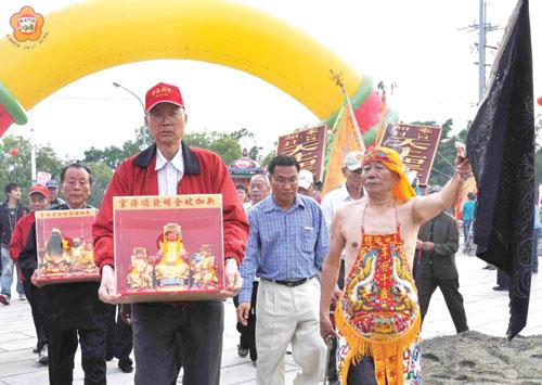 信仰斷層,新加坡媽祖離開新加坡;接班無人,七尊神明迎返順濟宮! 新加坡媽祖的金身,昨天被迎至料羅順濟宮奉祀。新加坡媽祖在海外護佑華僑將近百年歷史,如今卻因為信仰出現斷層,信眾只好把神明迎回料羅祖廟。 由新加坡返里崇祀的神明包括大媽、二媽、三媽、千里眼、順風耳、三魚王、讎府王爺、游將軍等共七尊。 由新加坡護送媽祖到金門的華僑包括陳顯明、謝炳祥、謝漢、謝阿峰、陳鄭阿桂、呂德榮等十二人。他們經由大陸轉金門,把神明送返料羅。 料羅順濟宮管理委員會主委謝政達及黃聰明、謝慶閣等與七十多名信眾,昨天簇擁宮中的讎府王爺、李府王爺、三魚王爺到水頭碼頭迎駕。其他信眾則扶老攜幼,在廟前候駕。 據陳顯明、謝炳祥等人表示,新加坡媽祖原本奉祀在「金明發順濟宮」,後來因為居無定所,東飄西盪,加上信仰斷層、接班無人,他們只好將七尊神明重新「粉面」後,連同「金明發順濟宮」所有的一百萬台幣(二十萬新加坡幣),一起送返料羅順濟宮,因為順濟宮是新加坡媽祖的祖廟。 陳顯明表示,把新加坡媽祖送返料羅順濟宮是怕平日無人管理祀事,以後他們還是會回金門朝聖。