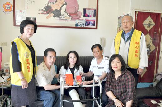 單親媽媽蔡麗回因意外受傷而無法工作,家庭頓失經濟支柱,在縣議員許玉昭的協助轉介下,繼福建省政府秘書長曾華德的慰問,台電金門區營業處處長李文選、榜林商人許鐵民也捎來關懷,各贈送一萬元慰問金。許玉昭還協調金門憲兵隊幫忙解決午餐和晚餐的問題,各界的關懷,讓蔡麗回好感動。 蔡麗回的丈夫已逝,獨立挑起家計重擔,以靠四處打零工、做清潔工作,賺取微薄工資來撫養三名子女,兩位子女正就讀大學,最小女兒讀國中,還要往返小金門照顧年邁的婆婆,日子過得很辛苦,但蔡麗回卻很認命,辛勤工作來支撐家庭的經濟和子女的教育費用。 蔡麗回的公公才過世不久,日前她要回小金門拜拜,兩手提著祭品於下船時滑倒以致腳斷住院開刀治療,住院半個月後回空大附近的公寓住家療養,因右腳裹石膏,不良於行,還無法工作,家庭頓失經濟支柱,蔡麗回相當煩惱,尤其是擔心就讀銘傳大學和長榮大學兩位小孩的每月生活費用。 縣議員許玉昭獲悉蔡麗回的處境,除了協調車船處處理後續的意外保險費,也幫忙解決眼前的家計生活,許玉昭說,這幾個月,蔡麗回是無法工作,也就沒有收入,只能先尋求社會各界的關懷,解決燃眉之急。 蔡麗回一家人也是台電金門區營業處長期關懷的對象戶,李文選由該區處總務經理洪清水、業務承辦人王建金、以及該處同心園地園長吳天姿陪同下,和許玉昭以及主動前往關懷的許鐵民一起送溫暖。 李文選說,蔡麗回的丈夫過世時,三個小孩還讀國小,該區處於年節辦理急難關懷慰問,都會慰問蔡麗回,這一次的意外受傷,該區處也贈送一萬元慰問金,表達一點關心之意。 許鐵民和蔡麗回的丈夫是好友,他也贈送一萬元的慰問金,一起幫助好友家人度過難關。 許玉昭也掛心蔡麗回不良於行,自己和小孩的三餐是問題,她說,蔡麗回不符合獨居老人送餐條件,只能請城區金門憲兵隊就近伸出援手,提供送餐服務。該部隊中校隊長許丕清很同情這一家人的處境,表示會提供中餐和晚餐的服務。 許玉昭還要尋求議會、紅十字會的慰問,也拜託民眾服務社向台省慈善社會團體爭取慰問金,在各界的關懷下,讓蔡麗回未來幾個月的復健期間,不用擔心小孩的生活費。蔡麗回滿心感激,感謝許玉昭、李文選以及各界的關懷。