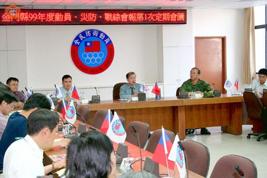 金門縣九十九年動員、戰綜、災防三會報昨召開第一次定期會議。會報召集人縣長李沃士強調,平時做好萬全救災準備,就能在災害發生時應變得宜,不致手忙腳亂。並感謝各單位的努力和合作,期以「無恃敵之不來,恃吾有以待之」應變。 金門縣九十九年動員、戰綜、災防會報第一次定期會議,昨日下午二時起在縣府第一會議室召開,由會報召集人縣長李沃士主持,行政院動員會報秘書呂崑海、台閩會報秘書陳琪昌、金防部副參謀長楊迺聲,以及各會報成員等近五十人出列席參加。 會中,戰綜會報秘書組並就上次會議決議事項辦理情形提出報告,及宣達上級指示事項及重要命令。動員、災防、戰綜會報秘書組並分別就工作進行報告。金門縣警察局、災防、動員、戰綜會報秘書組、金門縣政府社會局,也分別就九十九年度重大演訓(萬安演習)整備規劃、如何有效整合三會報聯合運作機制,支援軍事作戰及協力災害防救、後備軍人輔導組織協力救災之具體作為、縣府對有預警天然災害之「避難措施」與具體作為,提出報告。 縣長李沃士也指出,今年四月二十二日舉行的「金門縣九十九年度災害防救演習」,並感謝各相關單位及民間動員參與,未來希望更精益求精,並針對中央考評有需改善項目,加以務實改善。 李沃士指出,一旦有任何災害發生,災民安置也非常重要。他也以上任以來,發生在峰上的大陸籍「浙洞機156號」貨輪海難事件,經馬上成立應變中心,金防部及海岸巡、環保局等相關單位,經過一個星期左右,將三百噸塑膠粒撈完處理,是感謝金防部等通力合作,以及峰上居民的一起加入處理過程。 李沃士並指出,金門面對「霧鎖金門」的新課題,在過去因制度僵化,但現在國防部已超越過去,能迅速派軍機、軍艦主動加入疏運,讓國家及政府形象有加分效果,也表達對國防部的感激,希望大家來學習主動協助處理精神,以使鄉親得到最大保障。 行政院動員會報秘書呂崑海也對於縣府歷年來支持配合,讓各項演訓評比都相當優異,表達肯定。並同縣長李沃士一樣認為,對金門縣全民防空演練應事先週知縣民,以避免引起民怨。 而根據全民戰力綜合協調會報指出,國防部今年策頒「推展全民國防教育工作計畫」,以「國際情勢」、「國防政策」、「全民國防」、「防衛動員」及「國防科技」五大教育主軸,整合中央、各級政府、全民防衛動員體系、學校及社會團體等單位能量,將「全民國防教育」理念達到全面普及的目標。 而動員會報並指出,金門縣全民防空演練訂於九十九年六月十八日上午九時三十分至十時實施,僅實施「警報傳遞與發放」,不實施人員疏散避難及交通管制,採有預告、分區方式發放防空警報,於演習日七日前預告演習日期與時間。