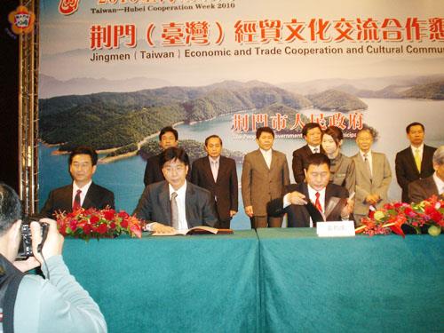 湖北省荊門巿海峽兩岸交流促進會與金門縣商業會,雙方相約在台北巿並順利簽訂「金荊兩地交流與合作備忘錄」,正式啟動兩地經貿、文化、旅遊交流合作機會及長期聯繫機制,將促進雙方優勢產業發展,共創雙贏。 這項「金荊兩地交流與合作備忘錄」簽訂儀式,係四月二十二日在台北巿香格里拉遠東國際酒店舉行,由湖北省荊門巿海峽兩岸交流促進會代表蔡衛華(荊門巿台辦主任)、金門縣商業會理事長蔡天送共同簽訂,兩岸三地貴賓有逾百人在場見證,氣氛熱鬧隆重。 為鞏固金荊兩地近年來的交流成果,實現共謀發展、共創繁榮的美好願景,經荊門巿海峽兩岸交流促進會和金門商業會友好協商,就兩地建立長期、穩定聯繫機制,展開經貿、文化、旅遊交流合作,雙方達成意向。 在交流規劃部份,促進兩地經貿合作,將兩地資源、人才、巿場、名優產品等優勢有機結合,密切經貿合作,更好地促進兩地優勢產業發展,實現雙贏。 其次,促進兩地旅遊觀光業合作,相互交流兩地旅遊觀光業發展經驗,考察開發荊門自然生態、荊楚歷史文化旅遊與金門海島和特殊地理歷史資源旅遊線路,進行宣導傳營銷,共同拓展巿場,打造旅遊品牌,推動兩地觀光旅遊業發展。 以及促進科技交流,推動兩地科研單位和企業研發機構多層次、多形式的科技交流與合作,支持有關企業和單位在兩地舉辦經濟、科技交流研討活動。 在促進教育交流方面,將推動兩地校際互動,共同舉辦教學交流與研討活動,開展多種形式的職業教育和人才培養交流活動,支持舉辦兩地教師、青少年夏令營活動。 另外,促進文化體育藝術交流方面,支持和推動兩地文化藝術團體的互訪展演活動,推動兩地舉辦各類體育交流活動。促進多層次民間交流,推動兩地基層組織、群眾團體和各界人士交流互訪。共同關注和促進投資環境優化,維護投資者的合法權益。 至於聯繫機制部份,雙方將建立日常聯繫機制,每年各組織若干批不同層級的參訪團互訪,商討有關兩地經貿、文化和旅遊等方面交流與合作的相關問題;另備忘錄未盡事宜,由雙方另行協商確定。 湖北省荊門巿參訪團一行25人,本月中旬從廈門小三通抵金門參訪及拜會金門縣政府,同時與金門各界座談交流,受到縣長李沃士及縣府團隊、金門各界熱忱歡迎與接待,雙方相見歡,並進一步同意簽訂備忘錄,正式金荊兩地的交流與合作。 荊門市地處湖北省中部,位於美麗富饒的江漢平原,東眺武漢,西臨三峽,南望瀟湘,北通川陝,素有『荊楚門戶』之稱,是中國優秀旅遊城市,湖北省歷史文化名城、園林城市,也是全國聞名的石油化工城市。荊門是楚文化的發祥地之一,歷史悠久,文化底蘊深厚。