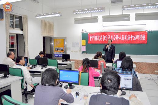 金門縣政府九十九年度公務人員英語會話研習班昨日在國立金門技術學院舉行始業式,縣長李沃士勉勵大家「學習絕對不會留白、學習絕對不會浪費寶貴時間」,唯有大家不斷的充電學習,透過研習以提昇中高階公務人員之英語會話與英語基礎能力,來和世界接軌而不脫軌。 金門縣政府九十九年度公務人員英語會話研習班始業式,昨日傍晚六時四十分在金門技術學院應用外語系四樓教室舉行,由縣長李沃士主持,國立金門技術學院校長李金振、教授范仲如博士、縣府人事室主任翁正義以及金門縣政府暨所屬機關、學校公務人員卅多人參加。 李縣長在始業式中致詞表示,很高興看到這麼多人來參與學習,尤其大家能利用寶貴時間、在這麼好的環境裡面繼續來充電學習,定能為行政體系帶來一股好氣象。唯有大家不斷的充電學習,希望透過研習,以提昇中高階公務人員之英語會話與英語基礎能力,來和世界接軌而不脫軌。 李縣長說,縣政要往前走、一定要有更多有上進、創造心同仁來共襄盛舉,今天是最好例子。李縣長勉勵大家「學習絕對不會留白、學習絕對不會浪費寶貴時間」,並鼓勵人事室將來的考評,上課時數就是很好依據。他謙虛表示,個人沒什麼好處,就是做事情實在,對的該鼓勵就多加鼓勵,願以此和大家共勉。 縣府辦理這項英語實用會話班,上課日期自四月二十七日起至六月二十四日止,每週二、四晚間六時三十分至八時三十分,在國立金門技術學院應用外語系四樓428教室上課,預計上課二十七次共五十四小時。邀請國立金門技術學院應用外語系范仲如博士及楊慧美博士擔任講座,就課程主題提供精闢的見解並引領學員探索學習。