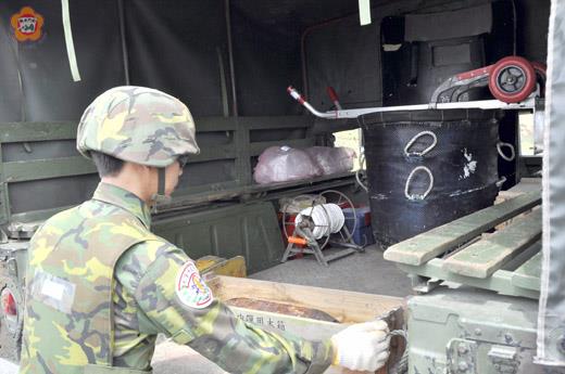 金湖鎮蓮庵里老村長呂丙丁,在下湖水庫往峰上天后宮段道路旁,發現一枚外觀完整,疑還有引信的未爆彈,昨日上午十一時通知軍方前往處理,一個半小時後才出現。聯勤未爆彈處理小組帶隊前往的田英欣說,其為飛機炸彈,約五十磅,引信已繡蝕無危險性,將進行銷毀。 對於現場質疑軍方不重視該未爆彈的危險性所以姍姍來遲,帶隊前往的田英欣指出,因需向上級回報並需待上級長官批准辦理,並非不重視。聯勤未爆彈處理小組依程序處理確認無抗動等危險後,順利將該枚未爆彈,以專用木箱裝置搬上車輛帶回處置。