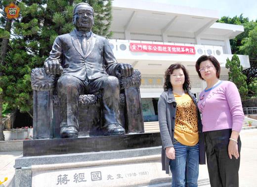 在「迎賓館」工作過的洪能碧,曾經用顫抖的手,把咖啡端給蔣經國│年輕時的她,就已經把這位總統當成偉人。 「迎賓館」重新開館,洪能碧舊地重遊,重溫舊夢。民國七十二年她的姐姐洪彩鳳看到報上有「迎賓館」招考人員的訊息,便在姐姐的慫恿下參加考試,並獲得錄取。 在「迎賓館」的櫃檯工作一年多,洪能碧看了許許多多的高級將領和熠熠紅星。她見過已故前國防部長俞大維,也見過帽子歌后鳳飛飛。 雖然蔣經國到金門巡視期間,都是到「鑑潭山莊」下榻,但還是會到「迎賓館」喝咖啡;因此洪能碧有機會服務到他。當時,蔣經國還誤以為她是另一位曾經在「迎賓館」工作的洪小姐,因此說了一句:妳還在這裡啊?在「迎賓館」工作只有一年多,就為了追尋志趣離開,但這段時間卻是洪能碧人生的轉捩點;當時的縣長張人俊到「迎賓館」喝茶,誇她茶泡得特別香,就說要幫她作媒;經張人俊執柯作伐,洪能碧與陳朝金相識,後來也真的結成連理;陳朝金目前是金門縣政府研考室主任,洪能碧目前在文化局工作。一直到不久前,張人俊還為自己點了這一本鴛鴦譜感到沾沾自喜。