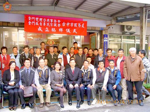 金門雙鯉公共事務會暨金門旅台李氏宗親會台中市服務處昨日舉行揭牌儀式,並由曾擔任台中市金門同鄉會理事長的李淑睿接任服務處主任,現場貴賓雲集;金門雙鯉公共事務會理事長李增得盛讚「慶幸得人」,並深信服務處在李淑睿的領導下,必能發揮更大功能,進一步做好服務鄉(宗)親之工作。 這項台中市服務處揭牌儀式於昨日上午十時起在李淑睿辦公室舉行,與會來賓除了有雙鯉公共事務會理事長李增得帶領李氏宗親八十餘人自台北南下外,尚有立榮航空中區主任羅駿諭、陸軍十軍團政戰主任黃開森、台中市議員數名、旅中同鄉聯合會多位理事長及秘書長及金門縣政府中部服務處主任聶政偉等貴賓到場祝賀,近百人到場參加,讓會場氣氛顯得熱鬧滾滾。 雙鯉公共事務會理事長李增得致詞時,除了謝謝大家到場參與該會台中市服務處成立掛牌儀式,讓成立儀式更顯熱絡與隆重外,同時也感謝李淑睿宗親提供良好的處所作為服務處之場所,並應允出任主任之職。 李增得表示,台中位於寶島南北之中點站,向來為工商繁榮人文薈萃之地,金門旅居台中地區之宗(鄉)親人口極多,尤其在年底升格之後,其轄區更大、範圍更廣,宗(鄉)親服務之能量更大;我旅台李氏宗親會與雙鯉公共事務會,為宗親與社團之團體,任務除服務宗親外,亦應善盡社會責任,對社會與同鄉作出奉獻與付出,此次慶幸得人,謝謝淑睿宗妹願擔此大任。 李淑睿為古寧頭林厝人,李增得推崇她學經歷俱佳,處世圓融,其親和力、領導與溝通力強,尤其服務方面積極熱誠,除自己經營事業外,對家鄉事務積極參與,同時對家鄉古寧頭事務向心力甚強,曾任金門旅台李氏宗親會爐主及顧問,另在同鄉會事務亦擔任多年副理事長與理事長職務,現亦擔任旅中各同鄉會理事長之職,所以她在宗親與鄉親事務甚為熱誠,人際關係極佳;如今服務處在其領導下,一定能發揮更大功能,做好服務鄉(宗)親之工作。