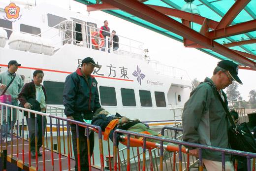 前往大陸訪友的台中縣民陳林寶鳳,於四月十五日因中風送到廈門長庚醫院診療,為回台進行療養,請求金門紅十字會協助,並在昨日上午順利經小三通搭班船抵金。 在金門紅十字會多名人員陪同護送下,陳林寶鳳老太太搭乘東方之星客輪,於昨上午十一時抵達水頭碼頭,等在碼頭岸上的署立金門醫院醫護人員及救護車,隨後也將她緊急送往署立金門醫院診療觀察,將後送回台療養。在小三通進出旅客逐年增加,兩岸交流、觀光往來日益熱絡,金門縣紅十字會也扮演兩岸人道救援吃重角色。