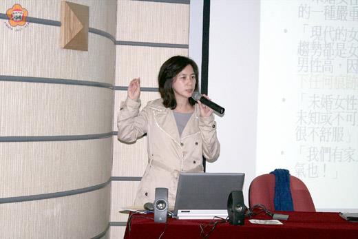 金門縣政府教育局昨日邀請台灣性別平等教育協會副秘書長楊靜怡,在金門縣立體育場以從「家好月圓」到「女生正步走」│習俗文化與性別,透過案例與觀念的分享,希望社會重視女性權益和兩性平等,避免性別傾斜和職場上對性別的歧視。 這場女性潛能擴展成長講座,並由金門縣家庭教育中心承辦,於昨日上午九時起在縣立體育場視聽室舉辦,並吸引三十多位民眾到場聆聽。教育局課長許能麗並全程參與。 楊靜怡指出,根據女書文化一項對習俗文化與性別之問卷調查,十項有違性別平等理念的習俗文化排行榜,即包括:一、女性不管未婚已婚,名字都不會被列入族譜。二、未婚女性若往生,只能住到姑娘廟。三、女生結婚時,娘家要往外潑水,因為嫁出去的女兒,就像潑出去的水。四、已婚的女兒,大年初一不能回娘家,大年初二才能回娘家。五、親人過世時,只能由男生執幡,由男生主祭。六、第一胎生女兒的話,坐月子不能吃麵線。七、生兒子的話,就是「弄璋誌喜」;生女兒就是「弄瓦誌喜」。八、結婚時,新娘要過火爐、踩瓦片、丟紙扇。九、生男孩可以送油飯,生女兒只送蛋糕。十、生理期時,不能持香拜拜。 她並以行政院主計處統計資料,說明女性勞動力參與率之國際比較。以2004年來說,台灣女性勞動力四百二十七萬人,約占十五歲以上女性人口百分之四十七點七,除分別低於亞洲鄰近國家約一到七個百分點外,更與英美二國差距約十至十二個百分點,顯示我國女性勞動參與率仍有進步提升的空間。 楊靜怡也指出,台灣女性參與勞動市場的比例雖然持續增加,但是兩性之間的平均薪資仍存在極大的差異。以2004年為例,所有非農業部門的女性受雇者其每月平均僅占男性的百分之七十八。 楊靜怡指出,台灣已經簽署、批准聯合國的「消除對婦女一切形式歧視公約」,其中第五條指出:「締約各國應採取一切適當措施,改變男女的社會和文化行為模式,以消除基於性別而分尊卑觀念或基於男女任務定型所產生的偏見、習俗和一切其他做法」。而此公約乃經2007年一月五日立法院三讀通過,二月九日總統批准並頒發加入書。而馬英九總統也曾於競選期間承諾將落實此一公約。