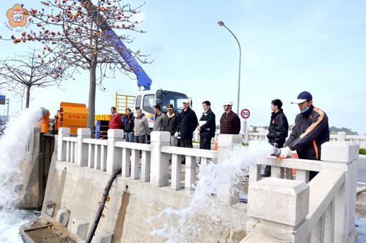 鑑於去年莫拉克颱風引發南部部分縣市大規模淹水及土石流之複合型災害,造成民眾流離失所、無家可歸,金門縣政府消防局未雨綢繆,邀各單位在金城鎮莒光湖畔舉辦防汛救災演練,演練過程逼真順暢。消防局長楊肅凱期勉與會人員通力合作經常演練,提昇救災效率和緊急應變能力,才能將傷害降至最低,讓縣民能對生活安全感到有信心、有保障。 縣府為強化各鄉鎮公所於颱風豪雨災害發生時的橫向連繫,並運用各項救災資源、人力與裝備,提升整體救災及防汛搶險能力,日昨(十六日)針對颱洪災害辦理災害防救示範演習,邀請各單位假莒光湖畔舉辦實兵演練,藉以充實防救人員防汛知識與技術。 為因應汛期及颱風時期將屆,消防局動員測試同時實施防災演練,演練係模擬颱風侵襲金門縣,挾帶大量雨勢造成金城鎮民族路淹水已達卅公分,並持續上升達警戒水位,災害應變中心工務局接獲通報,隨即聯絡金城鎮公所、自來水廠啟動浯江抽水站應變機制,然因雨勢過大水位持續上升,應變中心調派金門縣養護工程大型抽水機到場支援,架設大型抽水機進行抽水。 金門縣消防局長楊肅凱到場坐鎮指揮,下達各項應變處置措施。災害防災應變中心動員各相關單位人員進行「洪水災害應變作業演練」,演練項目包括避難勸告及防颱宣導、淹水搶救、避難疏散及引導,以及災民收容,在各單位配合下,整個演練過程逼真順暢。 楊肅凱指出,消防局舉辦這項防汛救災演練,召集各防救災編組單位災害防救人員參加,面對各種重大天災的威脅,正考驗著本縣防災編組在面對災害第一時間的反應和處置。同時藉由平時的預演,熟練災害來臨時,應變中心開設緊急動員能力,並且讓各單位對災害應變中心的進駐過程及運作機制能更加熟悉,民眾的生命財產才有更大的保障。同時提醒縣民,災害不分大小,只要全體總動員,務實、踏實、確實的做,當災害來臨時,一定可以將災損減到最低。