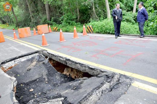 太湖路一段陽明潭路段道路塌陷 縣長要求全段檢視