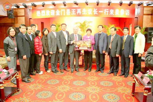 金門縣議會經建考察團一行,昨天拜訪大陸廈門市人民政府台辦處時,提出了金門人民到大陸免收落地簽簽證費建議,台辦主任吳明哲給了一個善意的回應,他表示,將會馬上來推動,把此優惠建議向上反映,露出一線的希望。 王再生和縣議會經建考察團員,係於昨天上午十一時三十分許,前往廈門市人民政府台辦處拜訪,並與主任吳明哲和台辦副主任吳順彬、處長謝永福、小三通處長孫麗玲等人座談,就金廈小三通和經建等事宜進行討論和意見交換。 王再生對於廈門市府台辦對金門小三通提供的協助相當多,代表金門縣議會說一聲:「謝謝!」並希望對於兩岸交流參訪申請手續能予簡化。他強調,不願再見到戰爭,是兩岸共同的願望,並在共同的互訪交流之下,促進兩岸的發展和繁榮。 吳明哲也表示,未來在翔安機場增設一個「金門通道」,是沒有問題的,除也可以服務到金門人民外,從大城市角度來思考,是有其經濟效益。 在拜訪時,雙方並就金廈文化、教育及經濟建設等議題,進行討論和意見交換。吳明哲表示,未來有何需要協助的,不要客氣。同時,他重申願意提供金門興建大橋的技術等各方面支援與服務。 另外,金門縣議會經建考察團一行人,也拜訪廈門市金門同胞聯誼會,在交談中,洋溢著濃濃的鄉情,十分的溫馨。 記者楊水詠/廈門報導 金門縣議會經建考察團一行人,昨天下午轉往泉州考察,並與泉州市人大常委會進行座談,雙方均希望未來加強金泉的交流與合作,共同打造兩地的觀光旅遊事業和發展經濟。 由議長王再生率領的縣議會經建考察團,是在昨天下午五時二十分,與泉州市人大常委會主任傅圓圓、台辦主任莊志民等人會晤,並進行座談,參加的縣議員有:楊應雄、歐陽儀雄、許玉昭、許燕道、唐麗輝、林孫全、王碧珍、林金量等人。 在座談中,泉州市人大常委會主任傅圓圓表示,金泉兩地的交流已展現成果,未來如何促使金泉航線越走越旺,可共同來努力與合作。同時,她強調,未來將致力做好海峽旅遊發展,與金門合作,打造兩地的觀光旅遊事業。 另外,傅圓圓也提出一項建議,希望與金門縣議會建立常態互訪交流機制,加強未來雙方的交流,增進金泉兩地的進步。 縣議會議長王再生除介紹目前金門建設成果和未來發展構想外,他也歡迎陸生到金門就讀大學,進行教育文化交流;同時,希望金泉加強在觀光、交通等各項事務的交流,帶動兩地經濟發展,為人民造福祉。