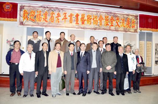中國福建省老年書畫藝術協會昨天跨海金門舉辦書畫展,以藝會友,受到金門縣長李沃士歡迎,希望透過交流讓兩岸在藝文交流上,帶來良好觀摩學習平台,展現兩岸濃郁的情誼。 福建省老年書畫藝術協會舉辦的「金門書畫藝術交流」展,昨日上午十時在金城鎮公所七樓展演廳舉行開幕儀式,由縣長李沃士、金門縣文化局局長李錫隆、金城鎮公所主任秘書蔡輝詩、金城鎮民代表會主席陳天成、金門縣美術協會理事長楊誠國與地方藝術界人士參加,雙方並互贈書畫、紀念品交流。李縣長並在黃文麟引導下,參觀展覽的作品。 福建省老年書畫藝術協會交流團13人,是由福建省老年書畫藝術協會會長黃文麟率領,成員包括:福建省老年書畫藝術協會常務副會長、原省人事局副局長應稚、省文化廳原副廳長郭勛安等循小三通搭船到金門交流。由於去年10月即提出申請,直到昨天才開展,以近百件國畫、書法作品展覽,團員們很珍惜這次交流機會。 李沃士指出,中國福建省老年書畫藝術協會這次能到金門來做藝術交流展覽,是地區重大盛事,地區過去在推動文化藝術方面,各位前輩也是不遺餘力,時常希望走出金門到大陸地區展覽,甚至到達台灣或東南亞,這樣的交流活動正可作為兩岸在藝文交流上,帶來良好觀摩學習平台。 李沃士表示,過去福建省老年書畫藝術協會也都有非常獨特、專業的領域,金門地區可做為學習的好榜樣,在今天的聚會裡期盼我們能做為協助文化交流,也能對地區的觀光景點多加瀏覽認識,金門也希望將來能發展成國際休閒度假的目標前進,也歡迎所有團員在參訪後能多給予推銷金門的美,尤其金門高粱酒更是地區重要產業,期盼能行銷大陸走向世界。他說,好的產品要和好朋友分享,尤其金門縣也是以福建省作為金門的行政區域,所以福建省老年書畫藝術協會抵達金門交流展出,我們也深感親切。 黃文麟會長表示,這次到金門做藝術文化交流展出,所帶來的近百幅作品都是會員精心傑作,這項書畫交流展展期3天,希望能透過交流觀摩增進兩岸人民情感。福建省老年書畫藝術協會也歡迎金門縣美術學會等藝術團體,組團到福州市交流展出,以藝會友。 福建省老年書畫藝術協會舉行「金門書畫藝術交流」展,昨日展出至十八日止共三天;展出八十餘幅精彩的書畫作品,歡迎地區鄉親踴躍前往欣賞。 一行人並走訪參觀金門各地景點,下午也到金門縣陶瓷廠彩繪陶瓷,兩岸書畫名家也當場揮毫創作,以藝會友觀摩交流。 文化局表示,此次蒞金展出的書畫家都是在大陸相當知名,其中張大鈞的畫作,較為地區百姓知曉,原來是他在2005年時(當年為雞年),獲金門縣政府的青睞,將其畫作繪印在瓷盤和金門高粱酒瓷瓶的正面,並命名「金雞鳴福萬家春」。瓷盤的背面和酒瓷瓶均有「雞鳴福至」的題字,成為當年縣府餽贈給外賓的首選好禮。