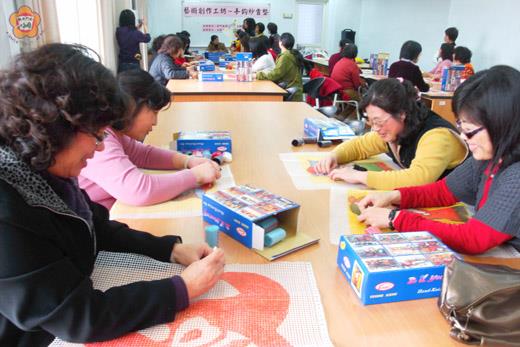 張建騰/圖文 「蝶古巴特」,拼出美麗! 「Otto2藝術美學會館」專任講師張媜雯昨天應邀由金湖國小附設幼稚園所承辦的外籍及大陸配偶家庭教育活動中指導示範及講授「蝶古巴特」。 「蝶古巴特」是法文的音譯,意思是將美麗的圖型剪裁後,拼貼、裝飾於用品或家具上,並透過設計展現創意。 張媜雯在研習課程中指導學員們用餐巾紙上的圖案進行拼貼。活動的主辦單位是金門縣教育局。