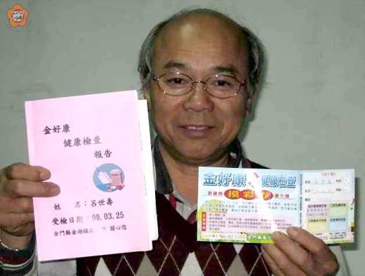 由金門縣衛生局推動的金好康免費健康檢查社區設站篩檢服已於四月啟動;卅歲以上的金門縣民接受「健康99健檢套餐」-免費健康檢查後,還可以參加「健檢摸大獎」。公開抽獎的時間,將另外公布。 健檢摸大獎的獎品有液晶電視、洗衣機、音響、腳踏車……等。民眾完成所符合的檢查項目後,於回診看報告時,可將衛生所發放的摸彩券投入摸彩箱-摸彩券要填妥基本資料及蓋章。摸彩箱放置地點在行政院衛生署金門醫院及各鄉鎮衛生所。 前往門診接受健檢的民眾,要攜帶健保卡或身分證;受檢的前一天晚上十時後要開始禁食禁飲,保持空腹至當天早上做完健康檢查。檢查完畢,衛生所會提供餐點。 免費健康檢查服務採院所門診及社區設站雙軌進行;活動由衛生局保健課承辦。各院所提供篩檢的期程為三月一日起至十一月二十日止。除署立金門醫院烈嶼分院將另行公布外,各所的門診的日期及時間已排定如下: 金湖衛生所(336662轉106)-每周四上午八點至十二點。 金沙衛生所(352854)-每周四上午八點至十二點。 金城衛生所(325059)-每周一至周六上午八點至十二點。 金寧衛生所(325735)健康檢查門診每周一至周六上午八點至十二點) 除烈嶼地區的社區設站時間將另行公佈外;各所在社區設點的日期及時間已排定如下: 四月十一日-金城鎮衛生所在古崗活動中心設點。 四月十八日-金沙鎮衛生所在光前里里公所設點。 四月二十四日-金湖鎮衛生所在成功里里公所設點。 四月二十五日-金寧鄉衛生所在湖浦村村公所設點。 五月二日-金城鎮衛生所在金門城活動中心設點。 五月八日-金湖鎮衛生所在瓊林里里公所設點。 五月十六日-金沙鎮衛生所在官嶼里里公所設點。 五月二十三日-金寧鄉衛生所在古寧村村公所設點。 六月六日-金沙鎮衛生所在浦山里里公所設點。 六月十二日-金湖鎮衛生所在新湖里里公所設點。 六月十三日-金城鄉衛生所在水頭活動中心設點。 六月二十日-金寧鄉衛生所在榜林村村公所設點。 七月四日-金城鎮衛生所在賢厝活動中心設點。 七月十一日-金寧鄉衛生所在安美村村公所設點。 七月二十五日-金沙鎮衛生所在汶沙里里公所設點。 八月七日-金湖鎮衛生所在溪湖里里公所設點。 金門縣衛生局表示:「千金難買早知道,健康樂活趴趴走!」,好康的事就是好厝邊一起來參加;希望鄉親踴躍接受金好康健檢。
