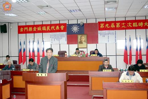 金城鎮鎮民代表會第九屆第十九次臨時會昨進行最後一天議程,金城鎮長石兆瑉上台報告未來施政計畫理念,他表示,鎮民的小事就是公所的大事,未來將秉持著服務基層的熱忱,針對所提出各項施政重點逐項詳加規劃實現,打造出改變、希望、優質金城,讓金城鎮為活力四射的希望城鎮。 石兆日上台報告未來施政規劃時表示,「改變、希望、優質金城」是競選時所提出的競選主軸,也是未來鎮務推動的主要概念,其規劃十項施政重點包括「金城醫院‧全力催生」:金城人口佔全縣三分之一,提升金城鎮醫療品質,爭取建立金城醫院,才能真正達成政府「尊重生命、搶救生命、照顧人民」的使命,兼可符合金寧、烈嶼地區民眾的需求。 「東門市場‧改頭換面」:引進公共造產概念,推動東門菜市場改建。 「金字招牌‧形象商圈」:建立金城形象商圈,打造特色商品的金字招牌。 「文創產業‧發展觀光」:掌握中央文創法立法趨勢,推動「文化/產業/觀光」三位一體計畫。 「快樂閱讀‧終身學習」:推動「快樂閱讀、終身學習」運動,加強民眾閱讀的質與量,同享獲得知識的喜悅。 「蓋電影院‧歡樂無限」:電影是人生精采故事的縮影,透過招商引資興建電影院,舉辦電影文化節系列活動。 「廟會文化‧驚艷全國」:包裝金城鎮大小廟宇的廟會文化,該鎮農曆四月十二日迎城隍慶典,有保留傳統特色的抬輦、人力蜈蚣座,結合電視、網路、平面媒體進行整合行銷及報導,讓全國驚艷。 記者李金鎗/金城報導 金城鎮民代表會第九屆第十九次臨時會昨日議程除聽取鎮長施政計畫報告外,並審議通過鎮公所五項提案後落幕。 昨日議程審議通過鎮公所五項提案包括,提案一、「審議台電公司九十九年度促進電力開發協助金」新台幣二十三萬七千元辦理先行墊付及完成預算追加程序後再行歸墊。通過後函報台電公司促進電力開發協助金審議委員會備查。提案二、為代表會辦理第十屆成立大會代表宣誓就職、選務等相關費之需擬追加新台幣十六萬五千元,請同意先行墊付,俟完成審議法定程序後辦理預算追加。提案三、為應業務需要,公所一般行政-廳舍管理-車輛及辦公器具養護費原編列新台幣二十九萬六千元經費調整案請同意該鎮辦理九十九年追加(減)預算案。提案四、為應業務需要,提高為民服務購置自動血壓計乙台計新台幣七萬五千元,請同意辦理該鎮九十九年度追加預算案,於完成法定程序前並請同意由該所先行墊付。提案五、請同意公所一、二、三樓辦公廳射擊會議室調整規劃暨四樓門窗整修經費新台幣三百八十一萬九千元,納入九十九年追加預算墊付案。