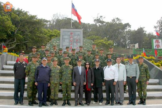 行政院政務委員兼福建省政府主席薛承泰昨日率員赴大二膽島慰勉守軍辛勞,並和戍守官兵弟兄話家常,他指出,大二膽島是國家門戶最前端,擔負國家安全任務,並以「大膽擔大擔、島孤人不孤」為題,與捍衛疆土的官兵共勉。 省政府主席薛承泰是於昨日下午率同省府秘書長曾華德、組長楊誠璽、秘書陳國興、專員洪進祿等省府團隊,並在陸軍司令部政戰主任鄭瑞堅中將及金門防衛指揮部指揮官張慶翔、政戰主任李智雄、烈嶼守備區指揮官::等人,及金門縣政府參議楊肅池、交通旅遊局局長林振查及何桂泉課長、金門國家公園管理處處長曾偉宏、副處長盧淑妃及課長黃子鵑陪同。約於下午一時二十分許由水頭碼頭搭乘兩棲偵察營小型船艇,首先前往二膽島、隨後前往大膽島勞軍,致贈團體加菜金,慰勞官兵弟兄辛勞。 行程中,薛承泰主席等人除聽取守軍簡報外,也參觀景點、觀看兩岸小三通船隻往來情形,並於砲陣地觀賞砲操演練,對官員演練精神讚不絕口,也和戍守官兵弟兄話家常,並合影留念。 首次登島的薛承泰表示,大膽、二膽島是國家門戶最前端,擔負國家安全任務,島上官兵弟兄士氣高昂,但交通不便,物資缺乏,官兵僅賴定期運補,以獲物資補給,而官兵在訓練之餘,也充分利用島上資源,像是雨水收集,飼養羊、雞、鵝、種菜等,像「開心農場」般,充分體現自給自足的精神。 薛承泰認為大二膽島守軍除了捍衛疆土,島上也處處充滿學習的機會,大二膽地處金門之最前線,令他感到欣慰的是,大膽島上既有通訊設備,包括手機、上網、傳真等沒問題,官兵弟兄也能以手機或上網與親人聯繫,稍以慰藉思鄉之情。就像是二膽島上賴明湯上將所題的「偉哉將士來去勿忘」,令人印象深刻,來了就一輩子回味無窮。 今年是大二膽戰役六十週年,薛承泰說,六十年來的歷史已印證大二膽擔負著國家安危重要任務,他並以「大膽擔大擔、島孤人不孤」為題,與官兵共勉。薛承泰主席一行人於昨日下午四時許完成大二膽勞軍活動返回金門。