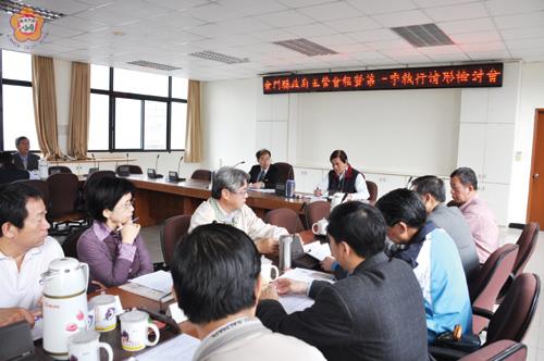 金門縣政府昨召開「99年度第1季主管會報指(裁)示事項執行情形檢討會」,經列管有36案,包括98年度有2件、99年度有34件,會中由各主辦單位逐項提出執行情形檢討報告,縣長李沃士裁示,未完成之案應持續追蹤列管及執行,俾落實施政目標。 有關交旅局執行的機場碼頭及重要景點建置電子式LED時間溫度顯示器,目前展開第二階段初步規劃,將於本縣各主要道路鄉鎮主要出入路口處乙案,李縣長裁示,外觀造型力求有變化,希望達到美化與實用的雙重效益。 對離島運動會將於今年10月2日在澎湖舉行,李縣長主張除了金門地區參與觀光文化及特產品展示行銷方案外,建議不妨利用運動會前舉辦「離島論壇」深入探討攸關離島法案議題,共同關心離島未來的建設與發展。 有關金馬獎頒獎典禮周邊活動,主席侯孝賢一行預定五月初先行抵金實勘場地,李縣長責成交旅局將參訪行程排入,以增加其對金門認識與了解,進而行銷金門。至於本縣組織修編將由19局室縮為17局室,以及事業機關「公司化」,他要求儘速完成及送縣議會審議。 李縣長對浯島迎城隍活動,除了要求交旅局確實掌握活動時間與進度,尤提醒,事前提出詳細計劃及細部分工,同時鼓勵歡迎國內企業團體參與,據了解,目前國內已有大企業主動表達參與意願,他希望金門迎城隍活動能發展成全國性的大活動。 除了迎城隍活動,縣府最重視關心莫過於建國百年紀念活動規劃案,金門提案已獲文建會初選並入選,李縣長責成文化局做好充分準備,並提出完整構思,同時尋求外部人力支援,以「和平」作為活動定調。 對金門鄉親赴台經常出現一票難求的窘況,李縣長要求交旅局持續追蹤航空公司每日搭載率及旅客結構,實地了解訂位額滿搭載率卻不高現象。大陸海漂垃圾處理,李縣長主張採用機械替代人力清除;至於,安寧返鄉合約,他責成衛生局未雨繆綢提早因應。 李縣長對巿區離島免稅購物商店及水頭港區所需提貨處區,希望儘快完成申請營業登記及變更營業品項,提早作為萬全準備及因應。中和五眷村案,截至三月底施工項目為七、八樓結構及水電管路施工,李縣長責成財政局先行研擬新建房地銷售辦法。 此外,金城車站出租供商業用途案,有關電梯增設部份;水頭通關大樓部份空間供商業用途案,財政局與港務處合約程序問題;英語人力庫訓練,以及文創經濟產值等等,李縣長均作明確裁示。