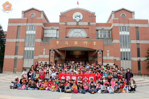 再過兩天就是兒童節了,金鼎國小昨日特別舉行戶外教學活動,由校長王添泉親自率領全校師生走訪包括縣議會、水試所與福建省政府等地,藉由別具意義的法治教育、環保教育之旅,提前歡慶兒童節! 金鼎國小師生一行約兩百多人,昨日上午在校長王添泉及老師們的帶領下,於八時許抵達縣議會參訪,受到議會議員歐陽儀雄、林金量及各組室主管的熱忱接待。 歐陽儀雄歡迎金鼎國小師生到議會來訪;林金量則表示,在了解議會的議事運作狀況後,希望學童們長大也有機會能夠為鄉親服務,到議會來工作。 王添泉指出,感謝議會協助,讓學童們提前接觸法治教育,並進入地區的最高民意殿堂參訪,也期勉學童們充實自己、精進學習,長大後能有機會進入議會,服務地區民眾。稍後,學童們也觀賞議會多媒體簡報,並在議會前廣場合影留念。 昨日上午,金鼎國小師生也前往福建省政府參訪,省府秘書長曾華德、組長楊誠璽、秘書陳國興、專員李振銳等人也親切的接待這群國家未來的主人翁。校長王添泉與金鼎國小家長會長翁明海也代表校方表達感謝之意。 曾華德提及,省府平常也接待過不少團體,但今日是最特別的,因為從孩子的身上,看到了未來的希望,對於金鼎國小師生的到訪,表示非常歡迎;曾華德也肯定金鼎國小在王校長的治學下,學校表現相當傑出。 曾華德也勉勵學童,未來的金門將會很進步、繁榮,並邁向國際觀光島嶼,而這些目標未來孩子們長大後都有機會參與其中,希望孩子要好好充實自我,往後對家鄉都能有所貢獻。