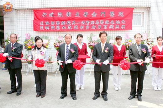 行政院衛生署金門醫院「烈嶼鄉醫療提昇~洗腎病患醫療在地化」烈嶼院區血液透析室,今(二十三)日上午十一時舉行啟用剪綵典禮;今後,烈嶼地區洗腎病患無需大小金兩地來回跑,只要到烈嶼院區就可享有這項在地便利醫療服務,確保自己身體健康。 署立金門醫院表示,烈嶼院區血液透析室洗腎醫療服務,配置有負責醫師傅仰賢、護理師許筑穎、林佑蓉;其主要設備包括有:一、血液透析設備;二、逆滲透水處理設備;三、醫用氣體及抽吸設備、人工呼吸輔助器或人工呼吸氣袋、氣管插管等急救、緊急供電等各項設備,提升在地醫療之便利性,順應地方民意之醫療服務需求,也為烈嶼地區洗腎病患做好健康把關,過著健康、愉快的生活品質。 金門醫院於96、97年的一月一日先後成立血液與腹膜透析室,地區洗腎的病患可以安心地於家鄉接受常規之透析治療,不必承受往返金、台兩地奔波,甚至搬家之苦。該院表示,但由於大小金門一水相隔,烈嶼地區之血液透析病患仍須一週三次搭船至院本部接受血液透析治療,往返間之舟車勞累更加重洗腎病患之身體負擔;尤其遇到氣候因素導致車船停駛時,更是增加病患之困擾與疾病危險性。 因此,金門醫院為能提升在地醫療之便利性,順應地方民意請求,於98年度下半年規劃成立烈嶼分院洗腎室,並積極培訓血液透析護理人力,以充足醫療能力,支援烈嶼分院透析醫療服務,並增進醫療服務效能。 金門醫院指出,烈嶼院區血液透析室係是就地整建,提供合宜、合格且便利之透析醫療場所,提高地區醫療服務水準,縮短城鄉差距,引進先進、合宜之洗腎醫療器材設備,將對洗腎患者提供良好醫療服務。