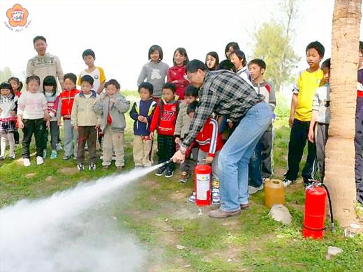 金城消防分隊結合義消分隊、金城鳳凰志工隊及婦女防火宣導隊率領所屬隊員,昨日抵賢庵國小展開家庭消防護照闖關宣導活動,藉由活潑快樂的活動教導學童學會各式各樣初期滅火及緊急逃生等撇步,也讓學童從遊戲中學習正確的防災知識,體驗活動中訓練防災逃生技能,落實消防教育向下紮根之理念。 近年來火災頻傳,許多家庭更因人命傷亡及財產損失而破碎,金城消防分隊為了讓學童從小開始學習如何預防火災及逃生常識,特別在賢庵國小舉辦發行『家庭消防護照』宣導活動,讓學童能體驗到火災的可怕,了解預防火災的重要性,進而延伸到整個家庭中,將防災防火的知識具體落實在日常生活中,減少悲劇的發生。 金城消防分隊在小隊長楊文斌的帶領下,結合義消分隊、金城鳳凰志工隊及婦女防火宣導隊率領所屬隊員,前抵賢庵國小進行消防安全宣導教育,受到校長董國正及師生的歡迎。 金城消防分隊於活動中體驗的項目有「疑雲密佈」、「神射手」、「火焰殺手」、「心技戰將」及「天降神兵」等六處寓教於樂的遊戲關卡,每站由關主講述相關消防安全常識,以生動活潑的戶外遊戲,代替生冷的課堂教學,讓學童親身體驗一次多元化的消防知識之旅,經由專業知識傳授讓國小學童能真正體驗到火災的可怕,將防災的常識導入日常生活,以預防火災發生,達到保護自己及家人生命財產安全的目的。 「預防工作」永遠是消防工作重要的一環,沒有災害發生,就沒有生命財產的損失!金城消防分隊指出,清明節即將到來,此次在賢庵國小董國正校長的重視下,配合消防分隊舉辦消防體驗活動,希望能達到落實防災教育向下紮根,深化防災教育意識,並將防災的基本概念,藉由學習能力最強的小朋友,逐步推廣到家庭、社區,減少清明節期間火災的發生,營造一個安全無災的環境。