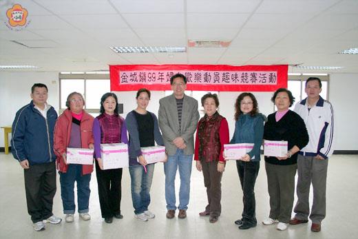 金門縣婦女會金城分會辦理99年度社區婦女歡樂動員趣味競賽暨環保宣導活動昨日熱鬧展開,一百六十多位婦女齊聚在金城鎮公所六樓展開一系列有趣的遊戲,經一番競逐,由前水頭社區組婦女隊獲得競賽冠軍,金城鎮長石兆瑉頒發獎品表揚各組績優隊伍,並鼓勵婦女們多走出戶外,參與各項有益身心健康的活動,凝聚社區婦女之向心及團隊精神之發揮。 這項由金門縣婦女會金城分會主辦、金城鎮公所協辦的社區婦女歡樂動員趣味競賽暨環保宣導活動,昨日上午九時在金城鎮公所六樓舉行,由金城分會召集人張含麗主持,金城鎮長石兆瑉、金城鎮民代表會主席陳天成列席,轄區各社區發展協會婦女出席參與。活動並安排鎮公所環保課長陳水友主講資源回收再利用相關課題,中午並舉行聯誼餐會,藉此加強婦女健康生活及安全社區相關實務教育,增進婦女健康保健及社會福利服務相關議題之重視,也讓婦女朋友們聯繫情誼。 金城鎮長石兆瑉向婦女們致意,肯定主辦單位為婦女們辦理這項活動,讓婦女們暫時拋開繁瑣的家務工作,走出戶外來舒展身心的健康。他指出,在學習的人生道路上,我們認為有兩種課程是值得我們終身去追求學習的,一是增進身體健康的知識、技巧或活動的課程;一是增進心理健康的知識、技巧或活動的課程。鼓勵婦女們多走出戶外,參與各項有益身心健康的活動。 這項歡樂動員趣味競賽在石鎮長致詞後,隨即展開各項趣味競賽活動,項目包括瑞獅戲球、百發百中、魚躍龍門等深具趣味活動,參與的各隊婦女為爭取佳績,莫不全力以赴,但也出現許多「凸槌」的畫面,惹得現場人員哈哈大笑,歡笑嬉戲聲迴盪現場,氣氛熱滾滾。 經過一小時的比賽,最後由前水頭社區組獲得競賽第一名,東門社區組第二名,南門社區組第三名,西門社區組第四名,北門社區組第五名。鎮長石兆瑉頒發獎品表揚各組績優隊伍。 活動並安排鎮公所環保課長陳水友主講資源回收再利用相關課題,透過婦女朋友的參與,和各社區結盟,創造健康的支持性環境,達成社會教育提升以及國民保健知識等目的。