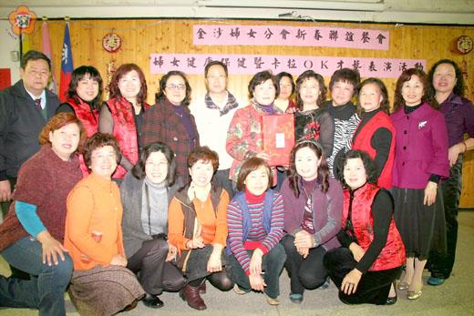 金門縣婦女會金沙分會昨日辦理聯誼活動,三百位婦女齊聚一堂,藉由才藝表演聯誼,邀請衛生局進行壓力與情緒管理專題講座,台上飆歌,台下婦女們跳起土風舞活動筋骨,不分老幼歡歡喜喜,渡過一個健康的聯誼會。 婦女會金沙分會於昨日上午九時起,假金沙鎮忠孝新村活動中心,辦理婦女健康保健教育暨卡拉OK自助聯誼活動,由分會會長楊意金主持,包括名譽理事長陳麗玉、婦女會理事長許華玉、副總幹事莊招治、金沙鎮鎮長陳昆第、縣議員李麗貌、楊應雄、忠孝新村社區發展協會理事長張金成、汶沙里里長張瀚龍、立委陳福海由金沙服務主任王石堆代表參加,一同向與會婦女獻上祝福。 婦女會金沙分會目前共計有三百位成員,共分為十九組,每組二十餘人最多人數高達三十二人;除了金沙地區的婦女外,金湖婦女也跨區參與,和姊妹淘每年透過聚會活動連繫情誼。 楊意金在主持活動時首先感謝大家的到訪並向三百位姊妹們拜年,她說,感謝大家的支持,也謝謝十九位小組長的辛勞、期許你我更同心、更用心經營,讓分會會務昌隆,重點是姊妹情誼更深厚、融洽。 婦女會金沙分會聯歡活動現場有卡拉OK供婦女朋友自助歡唱外,也安排腰鼓隊精彩演出,婦女們透過才藝交流,彼此在台上卡拉OK歌聲伴唱下,聞樂集體跳起土風舞,從三十幾歲至七、八十歲都有,聚在一塊不分你我,歡歡喜喜。 除了歡樂節目外,為提昇婦女新知,現場由衛生局進行壓力和情緒管理講座,並分送由縣府所印製的家暴宣導單及金門縣婦女福利服務宣導簡介,將攸關婦女權益的消息提供給與會三百位女性朋友,希望大家歡樂之餘也要享有健康、幸福的生活。 聯誼活動持續至下午二時止,楊意金代表分送給三百位會員紀念品。她感謝議長王再生、副議長許建中、議員唐麗輝、楊應雄、金沙鎮代會副主席王秀玉、牙醫師翁建中、金沙鎮代表會、沙美萬安堂管委會主委張雲盛、名譽理事長陳麗玉、榮光新村社區發展協會理事長張光海、金沙鎮代表蔡寶愛、里長張瀚龍等各界提供贊助,讓活動順利圓滿成功。
